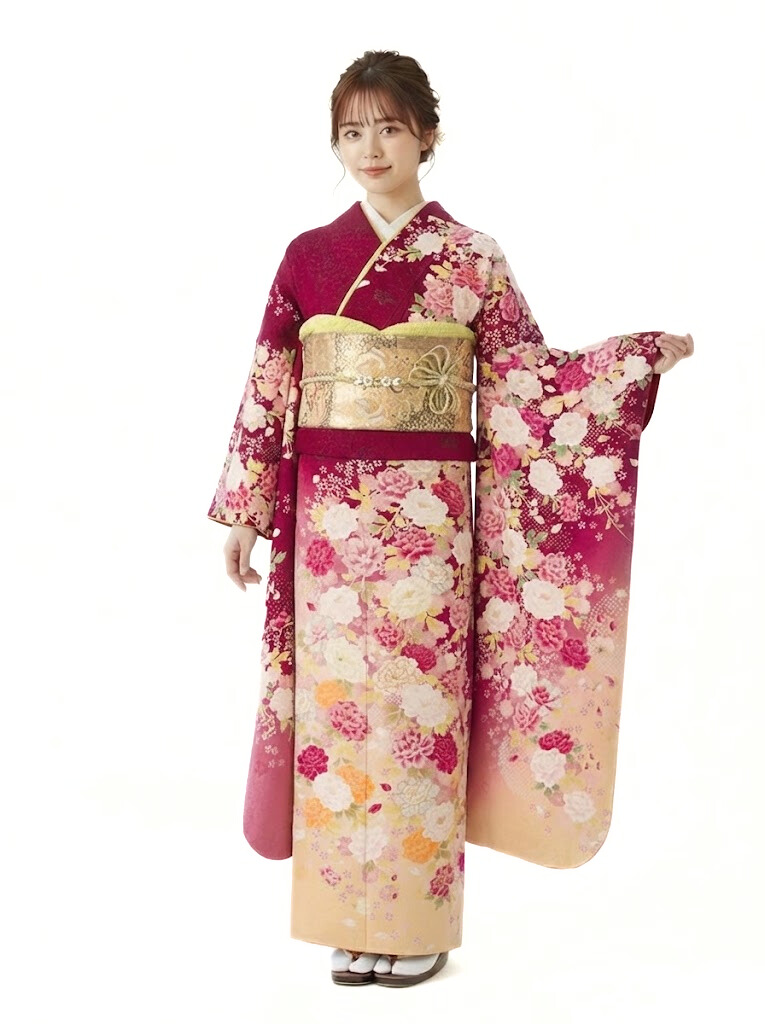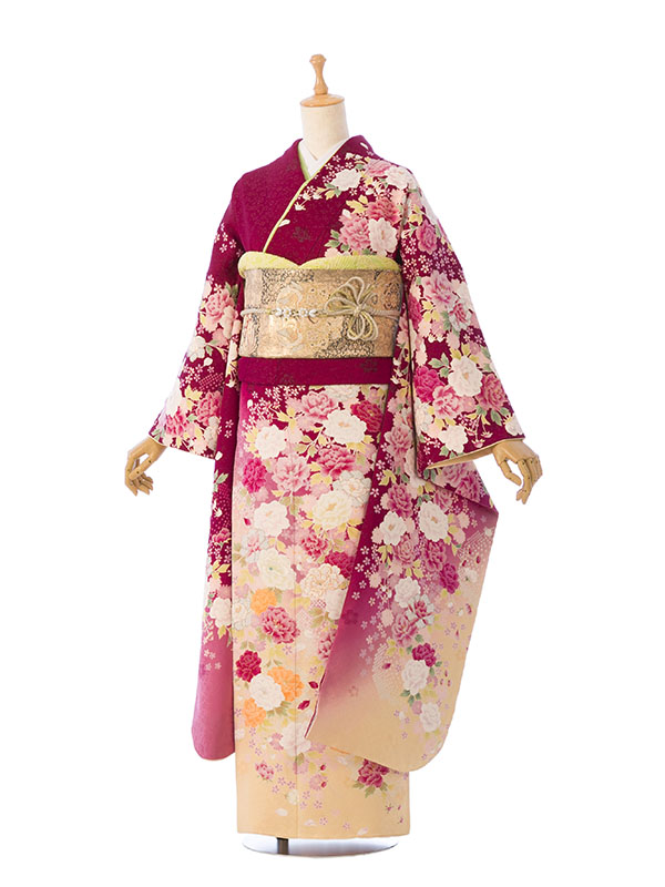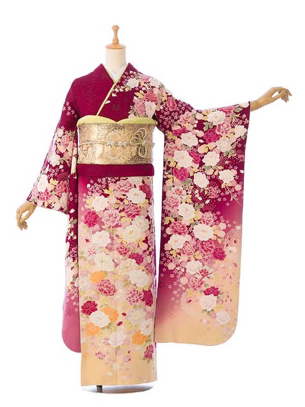 振袖|赤系|桜 牡丹|対応身長:153-165cm|サイズ:7号-13号|5S558