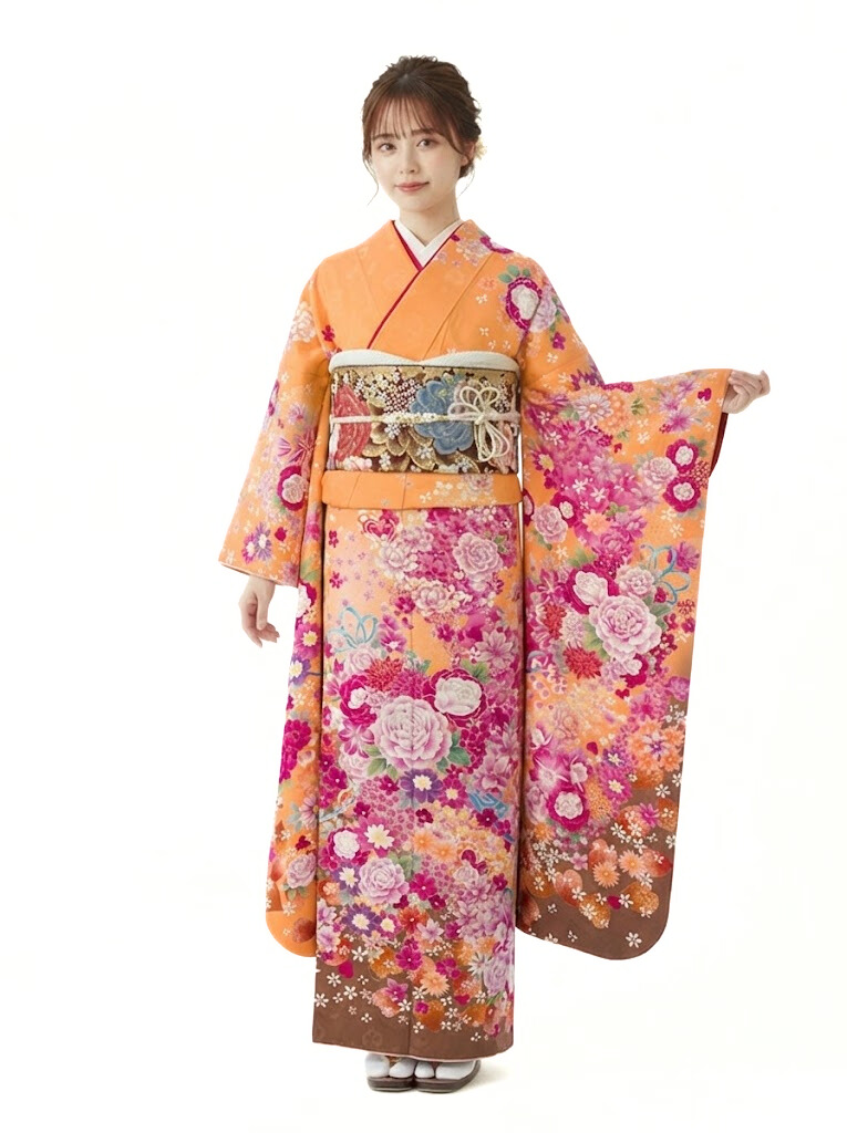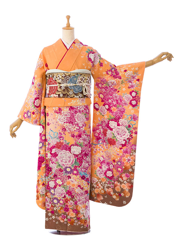 振袖|オレンジ系|百花 |対応身長:153-165cm|サイズ:7号-13号|7S611
