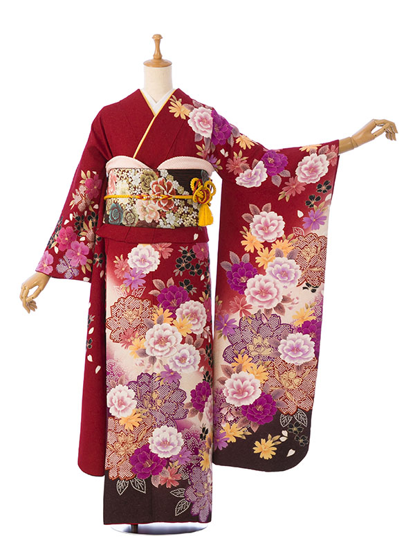 振袖|赤系| 牡丹|対応身長:153-163cm|サイズ:7号-13号|6S033