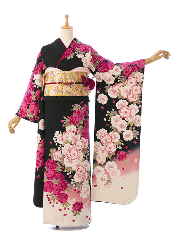 振袖|黒系|桜|対応身長:153-163cm|サイズ:7号-13号|6S192