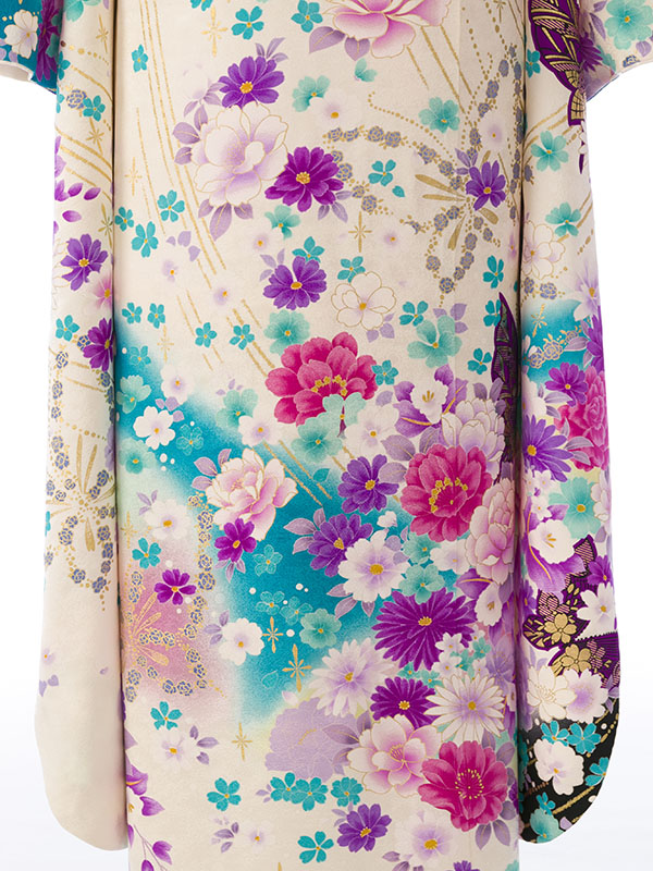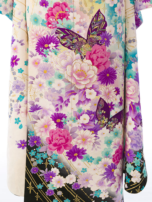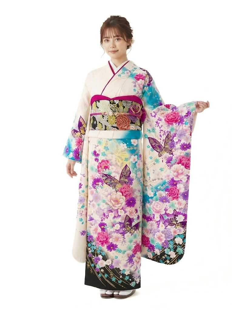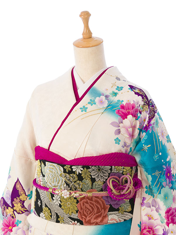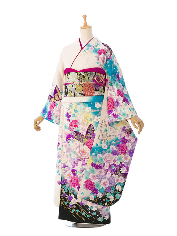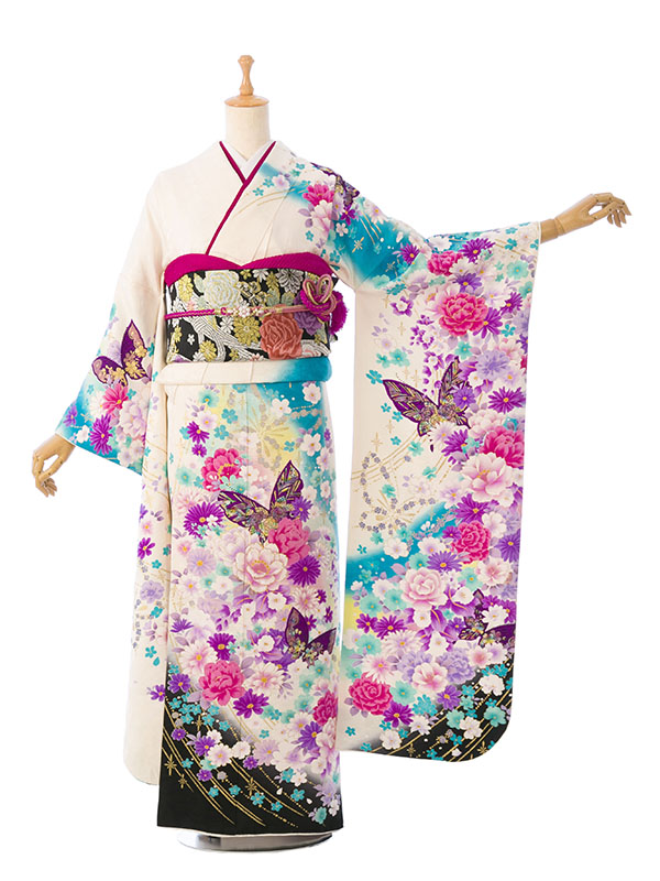 振袖|白系|牡丹 桜 蝶 |対応身長:153-165cm|サイズ:7号-13号|7S778
