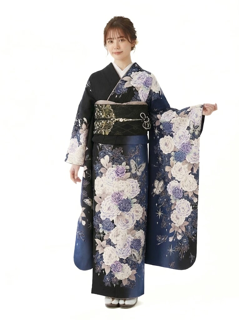振袖|黒系|星 薔薇|対応身長:153-165cm|サイズ:7号-13号|6S615