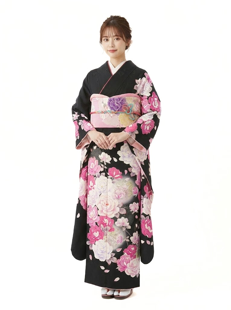 振袖|黒系|薔薇|対応身長:153-165cm|サイズ:7号-13号 |6S121