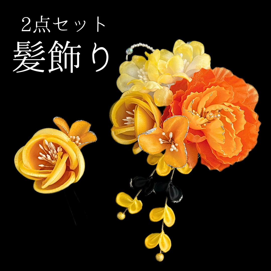オレンジ×黄色の組み合わせが、明るく可愛らしい雰囲気の髪飾りです。