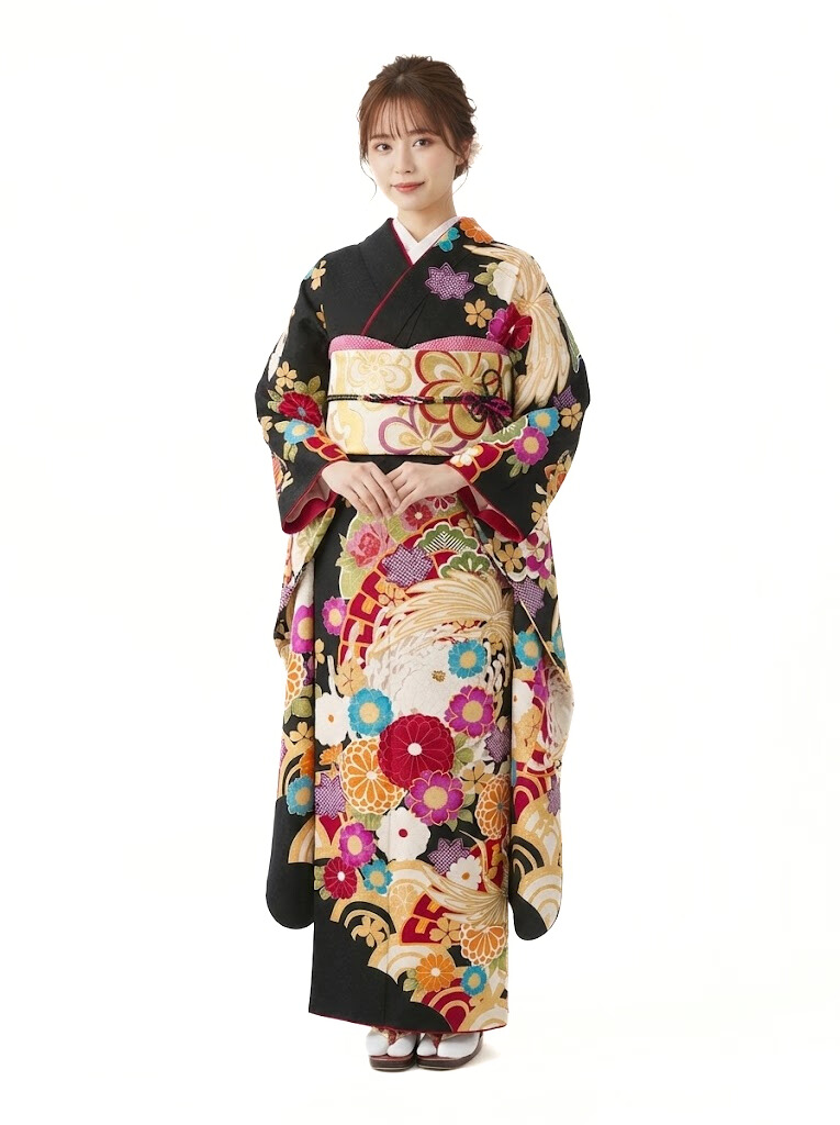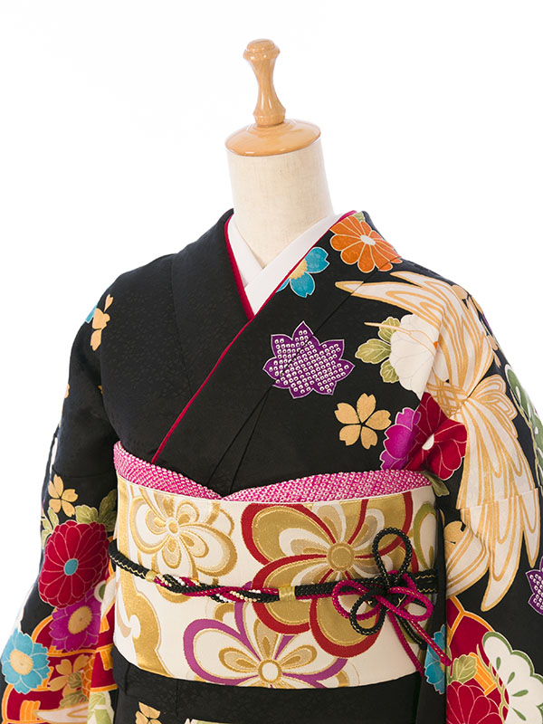 振袖|黒系|KANSAI|鶴|対応身長:155-165cm|サイズ:7号-13号 |7S368