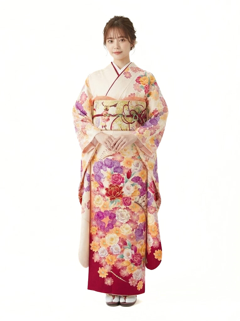 振袖|白系|薔薇 洋花|対応身長:153-165cm|サイズ:7号-13号 |6S593