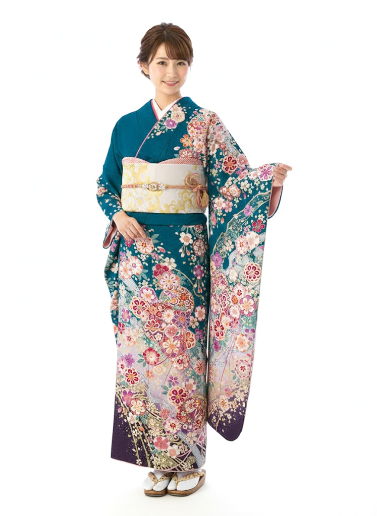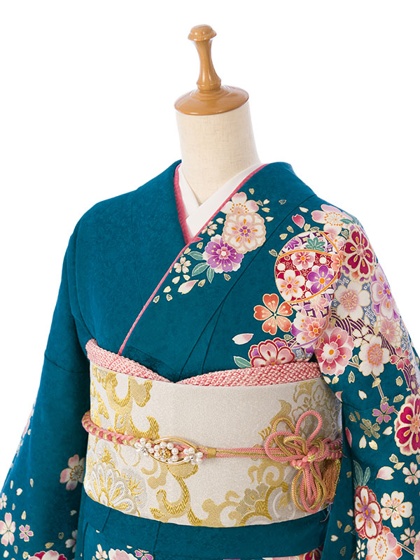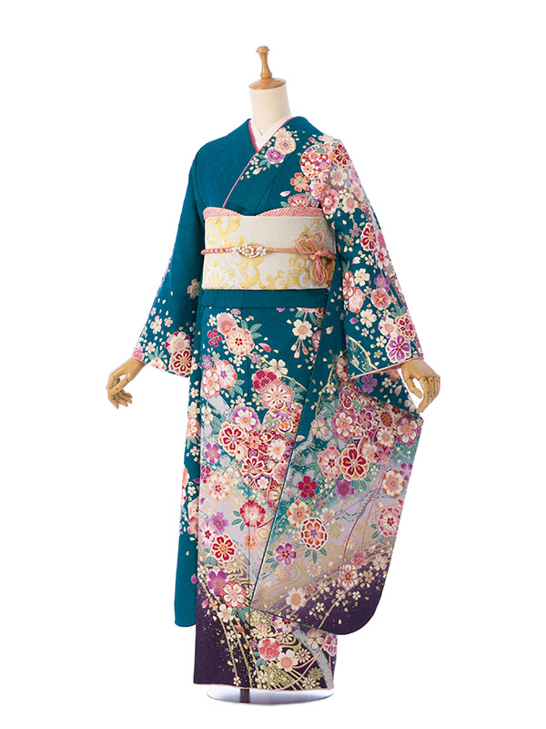 振袖|スモール|ワイドサイズ|緑系|対応身長:153-160cm|サイズ:13号-17号|7S762