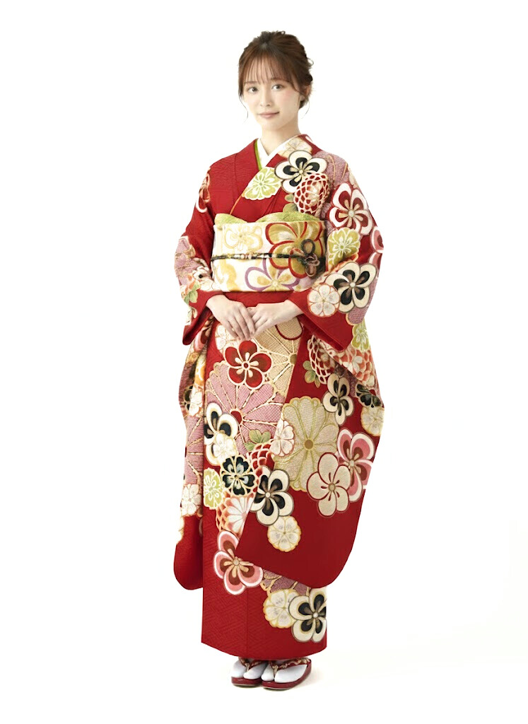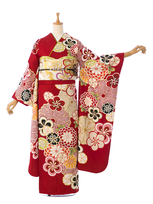 振袖|スモールサイズ|赤系|華紋|対応身長:150-160cm|サイズ:7号-13号|1S2049