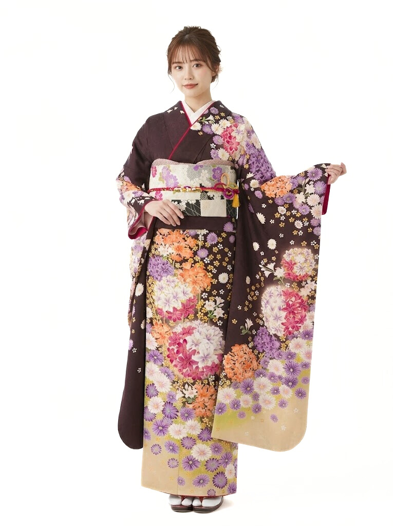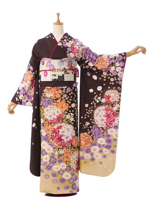 振袖|茶系|花玉|対応身長:158-168cm|サイズ:7号-13号|5S765