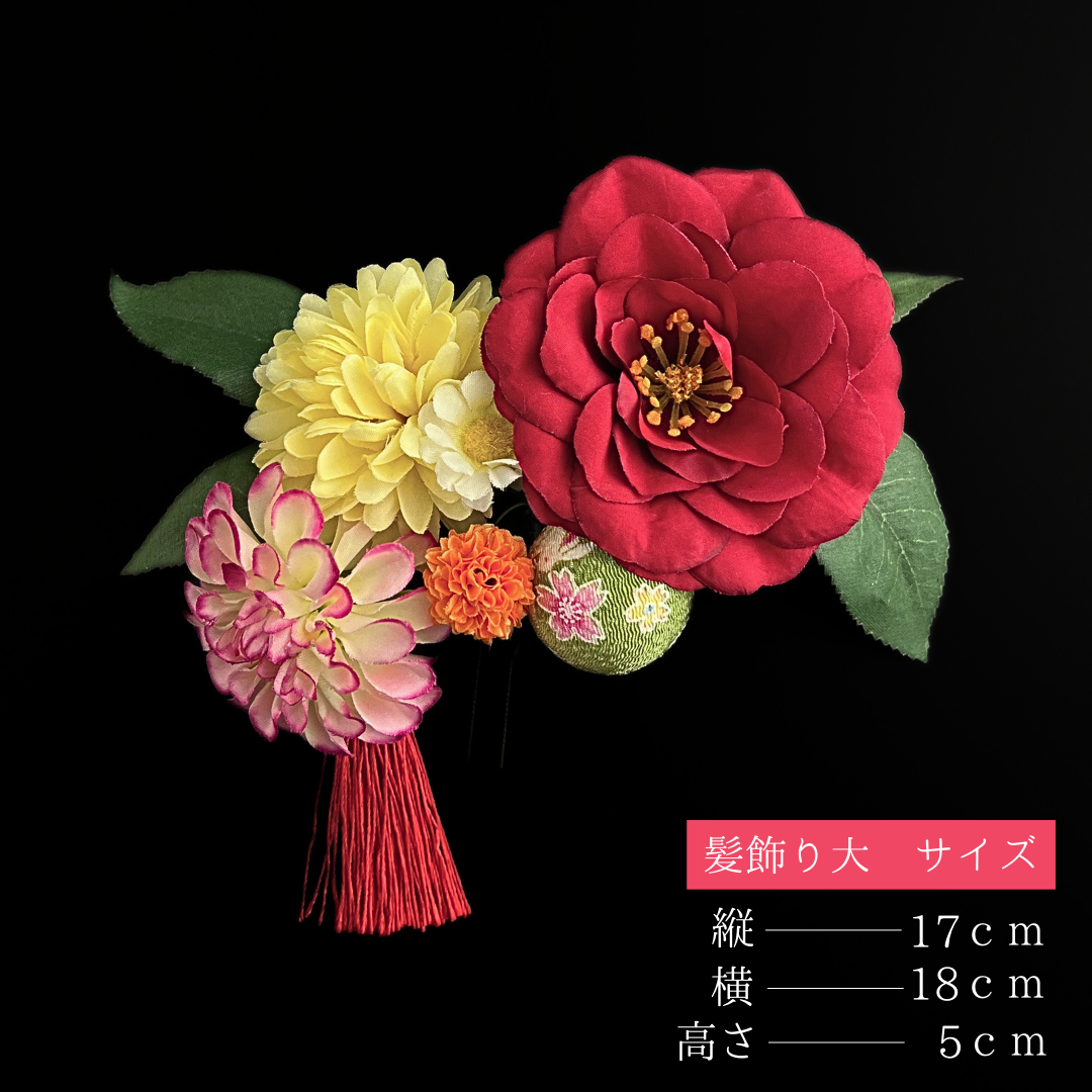 髪飾り大:縦約17cm×横約18cm×高さ約5cm(Uピン仕様)