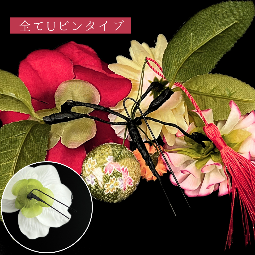 髪飾り小:縦約8.5cm×横約8.5cm×高さ約6cm(Uピン仕様)