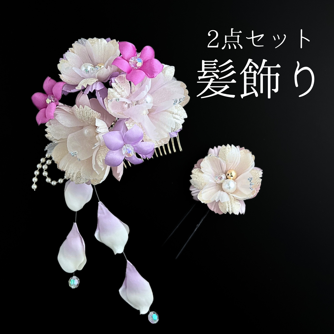 小花のぶら飾りは髪に付けた時にユラユラと揺れて可愛さが倍増します。