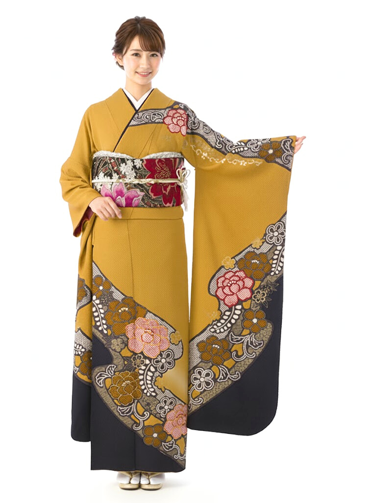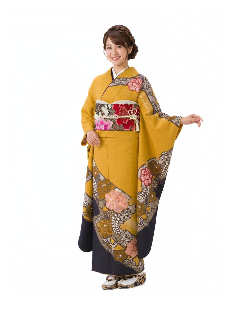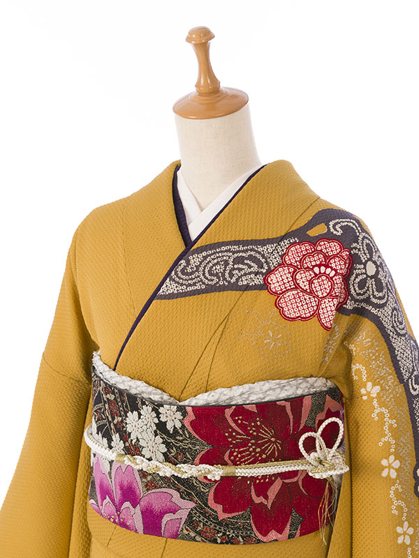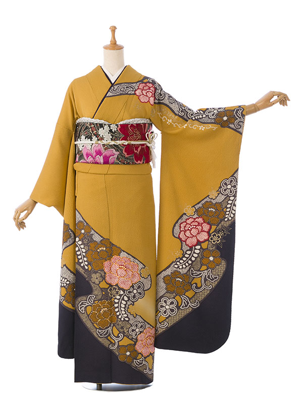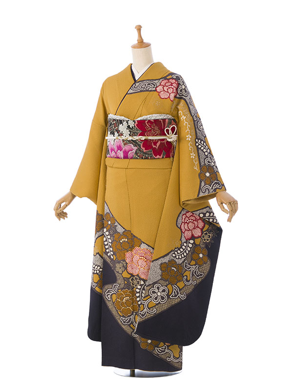 振袖|からし系|牡丹|対応身長:153-165cm|サイズ:7号-13号 |4S115