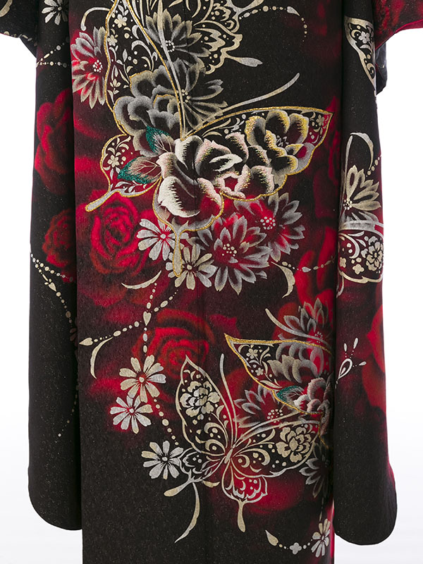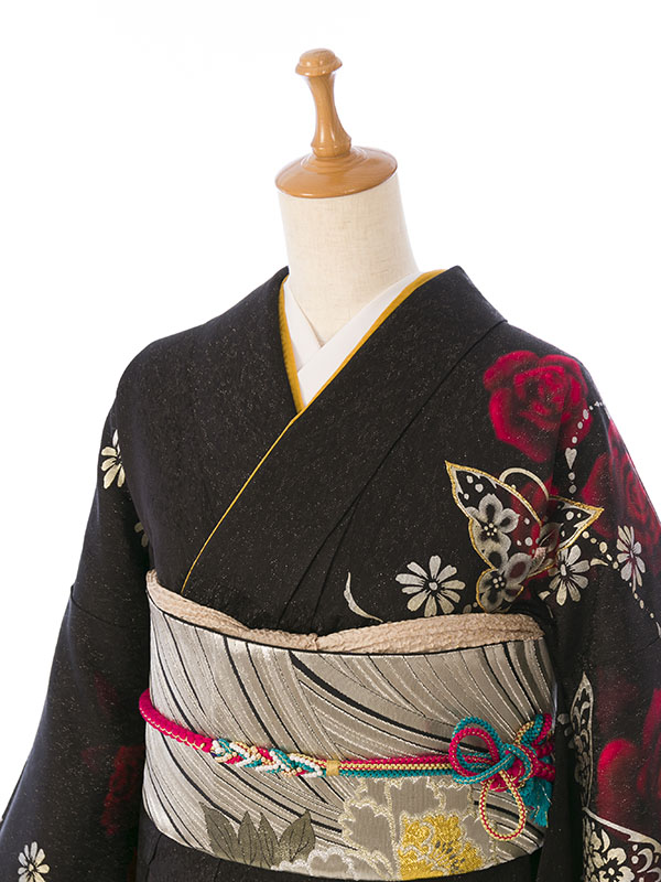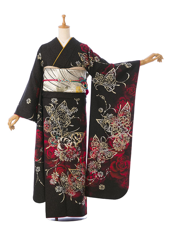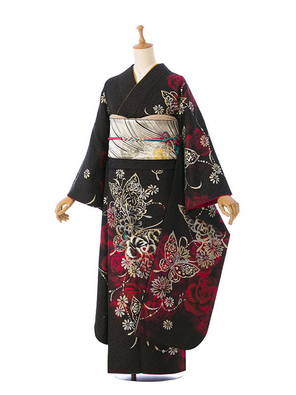 振袖|黒系|薔薇 蝶|対応身長:153-165cm|サイズ:7号-13号 |6S714