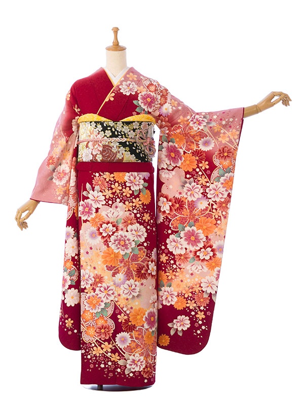 振袖|赤系|桜菊|対応身長:153-165cm|サイズ:7号-13号 |1S1546