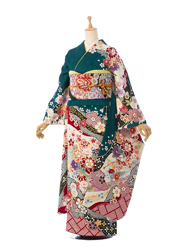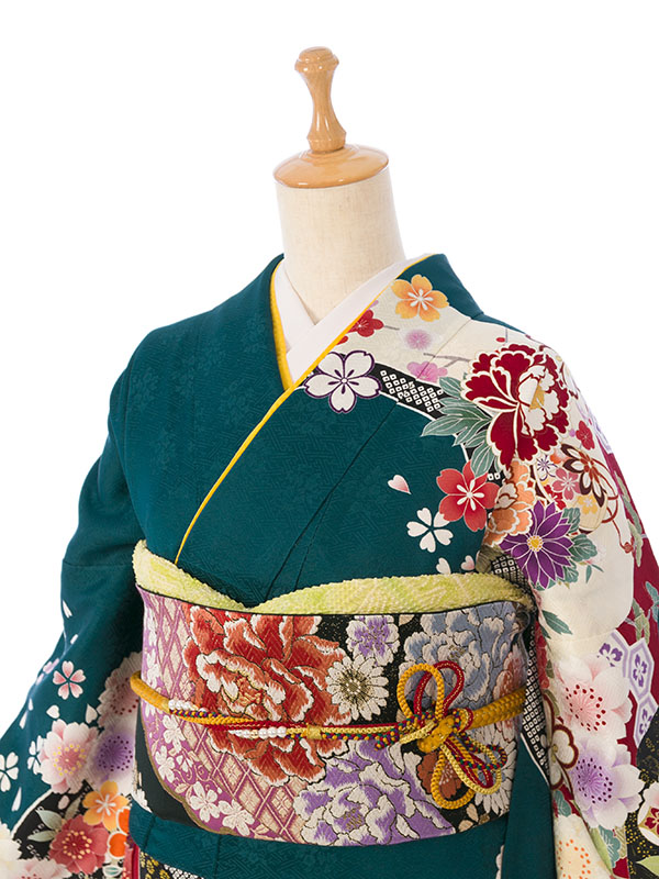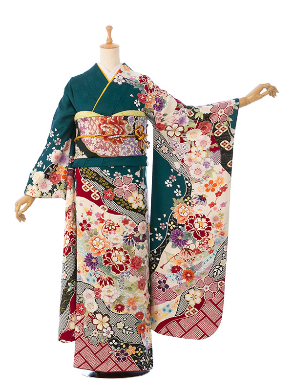 振袖|緑系|四季花|古典|対応身長:158-168cm|サイズ:7号-13号 |1S2849