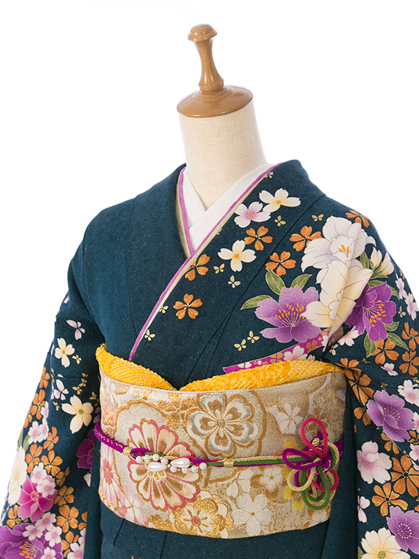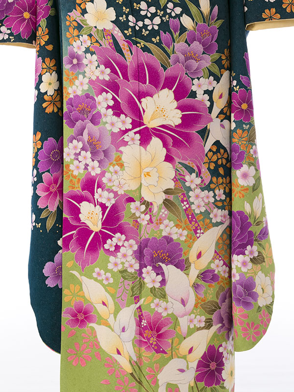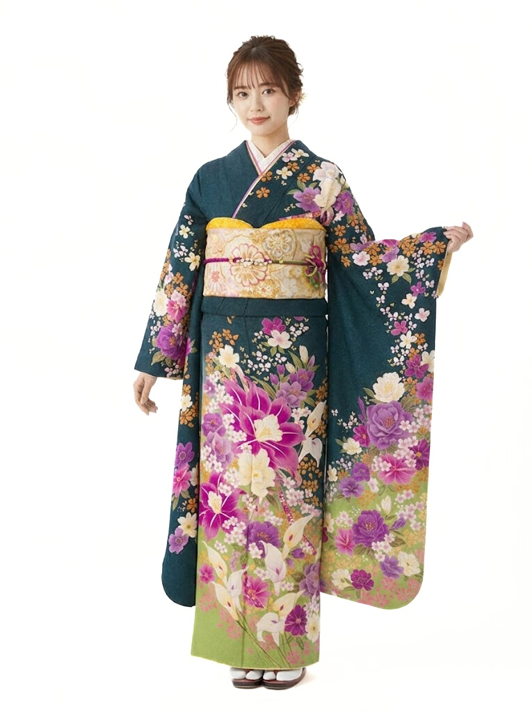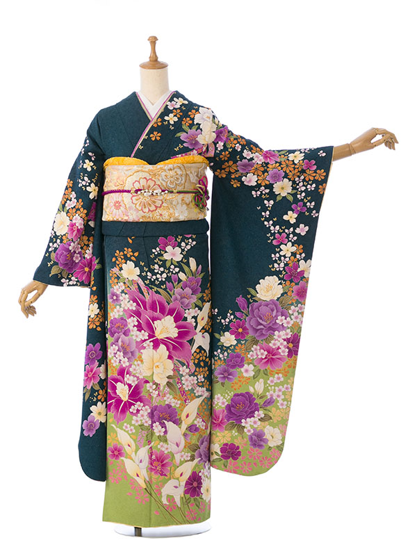 振袖|緑系|百合|対応身長:158-168cm|サイズ:7号-13号 |6S019