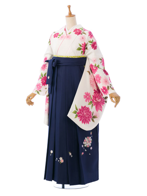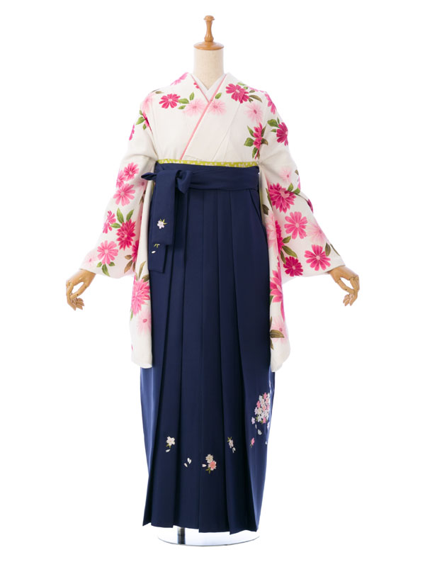 卒業袴|白系|洋花|8R1129|対応身長:163-167cm|サイズ:15-19号