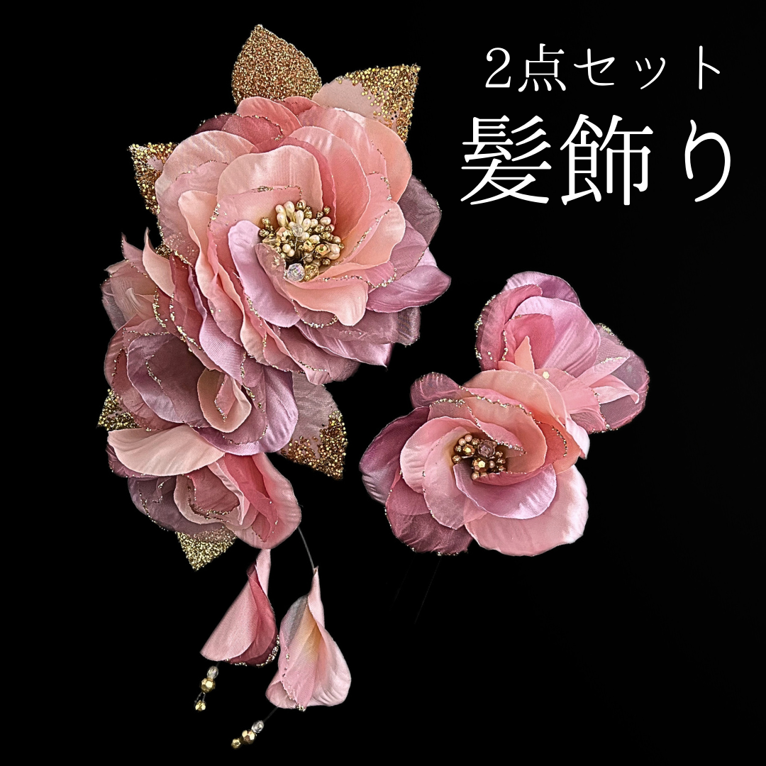 ラメの着いた花びらがきらきらと煌く美しいお花飾り。