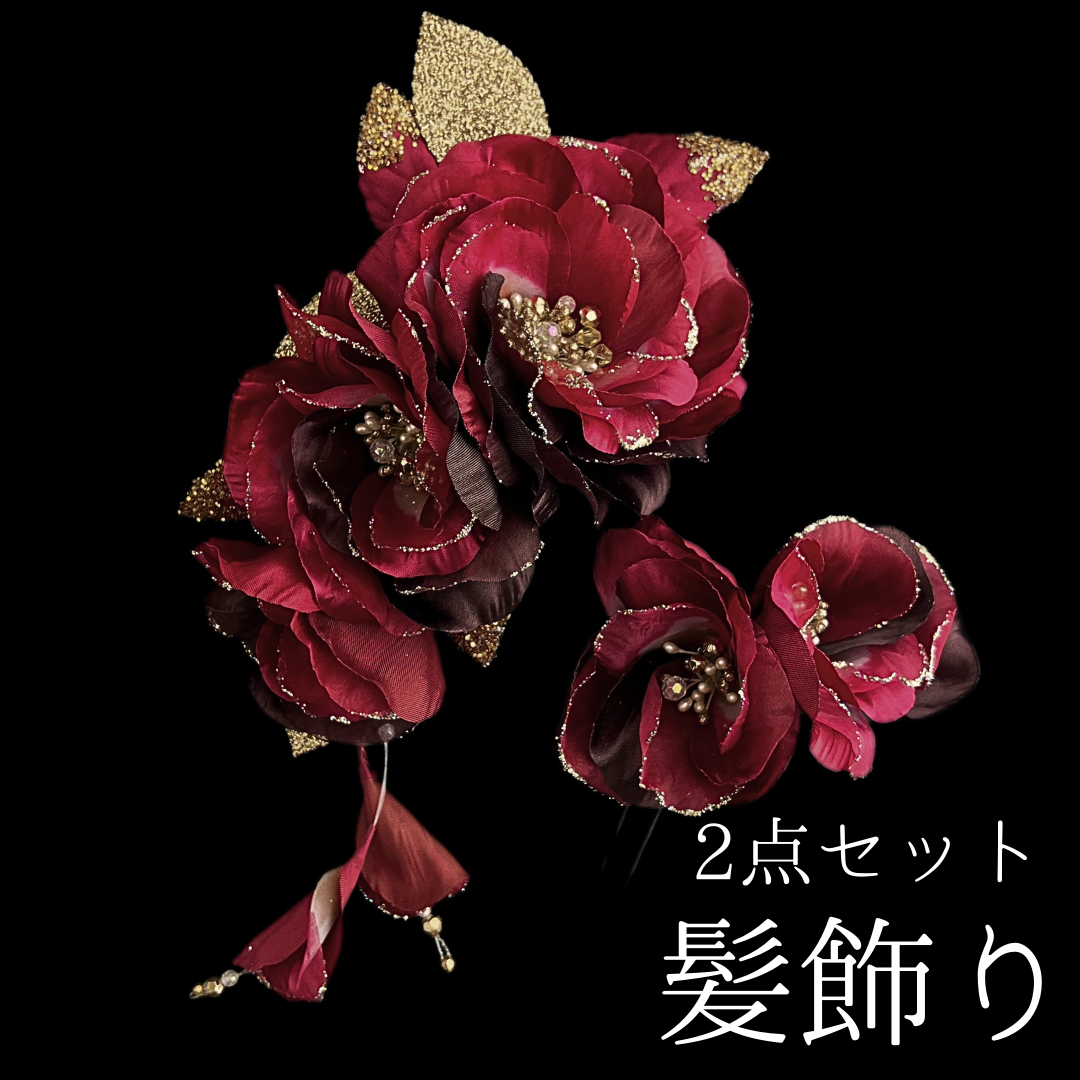 こっくりとした赤色の花びらの先にラメがついていて、きらきらと煌く美しいお花飾り。