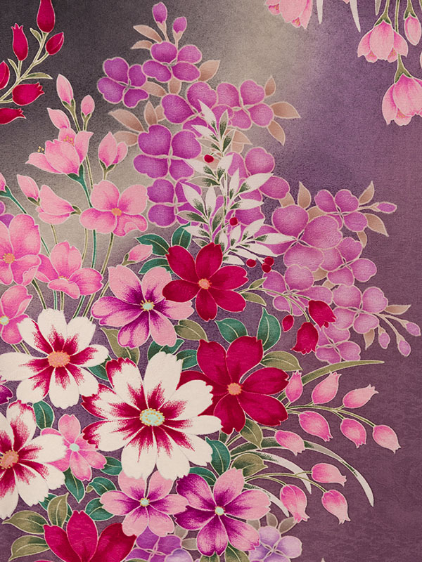 ■着物: グレーぼかし地 秋桜 洋花