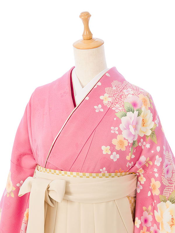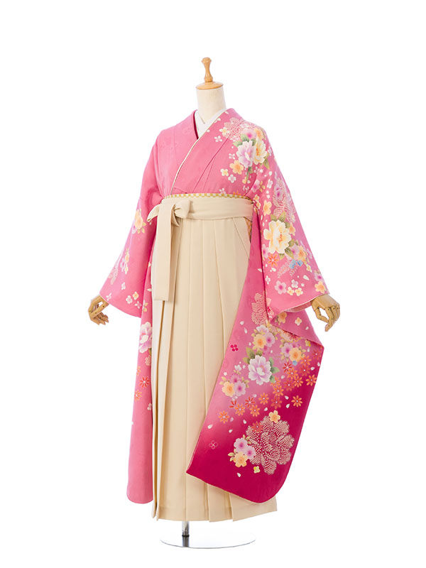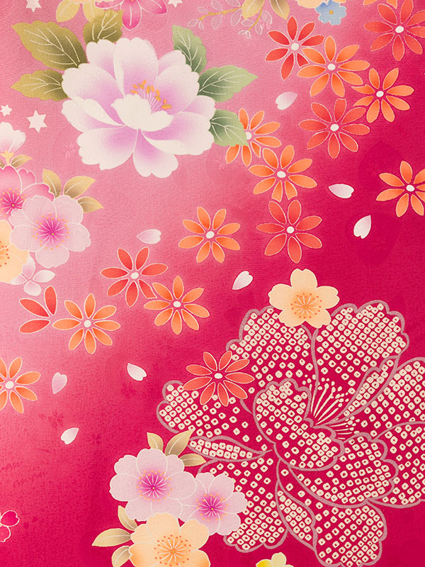 ■着物: ピンクぼかし 牡丹に桜