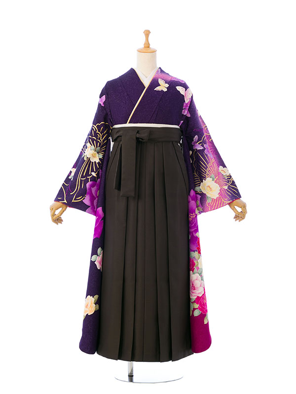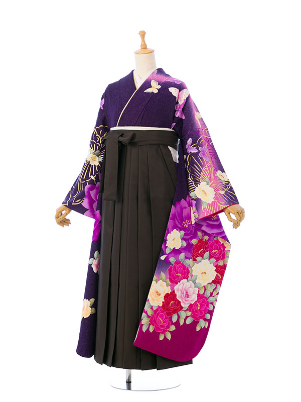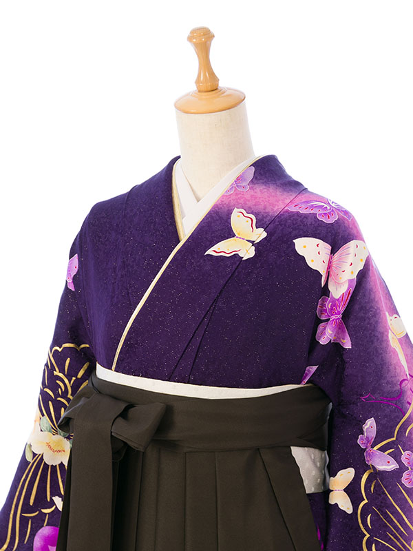 ■着物:紫ラメ地 グリッター薔薇に蝶 金彩
