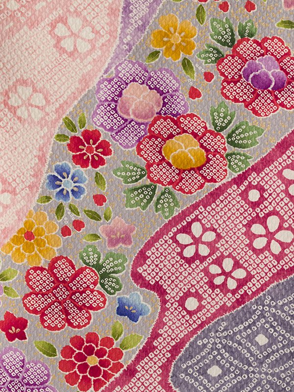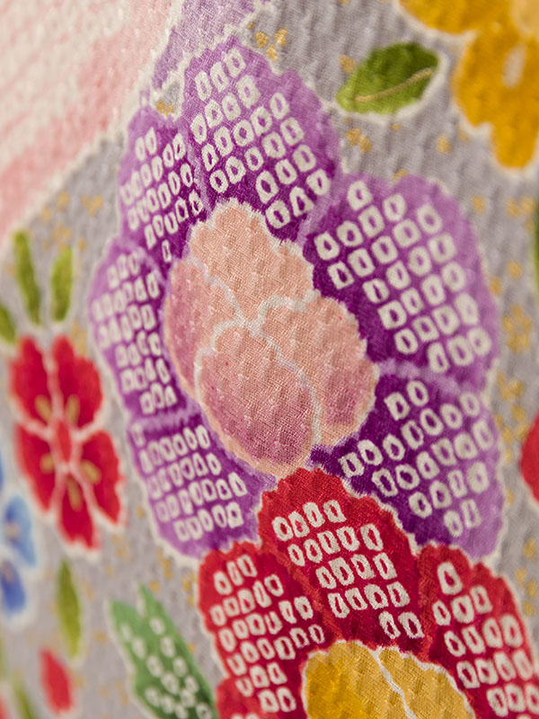 ■着物:ピンク総絞り 道長に四季花