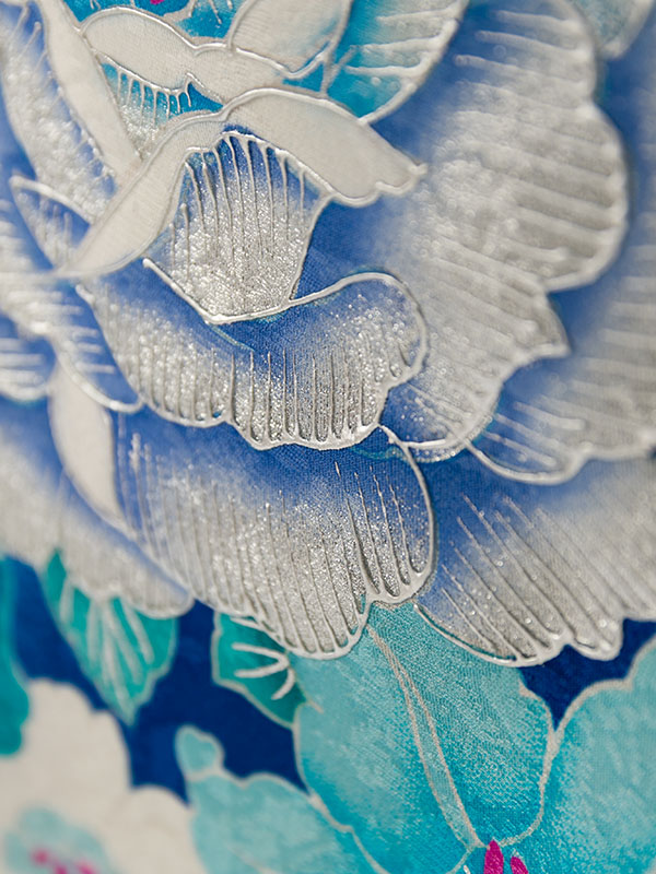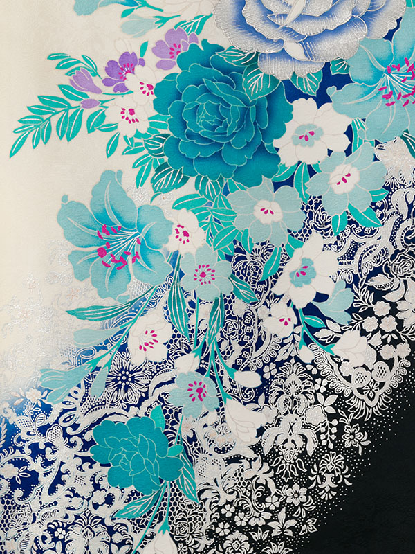 ■着物: 桂由美 白ブルー 薔薇 銀彩