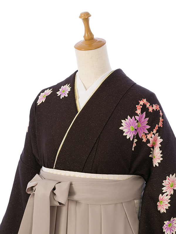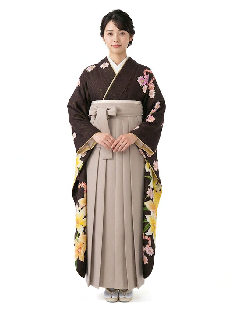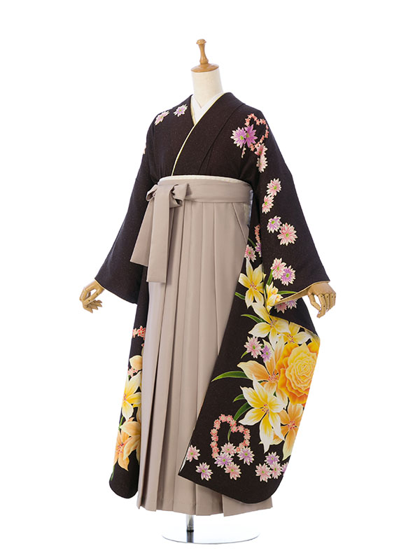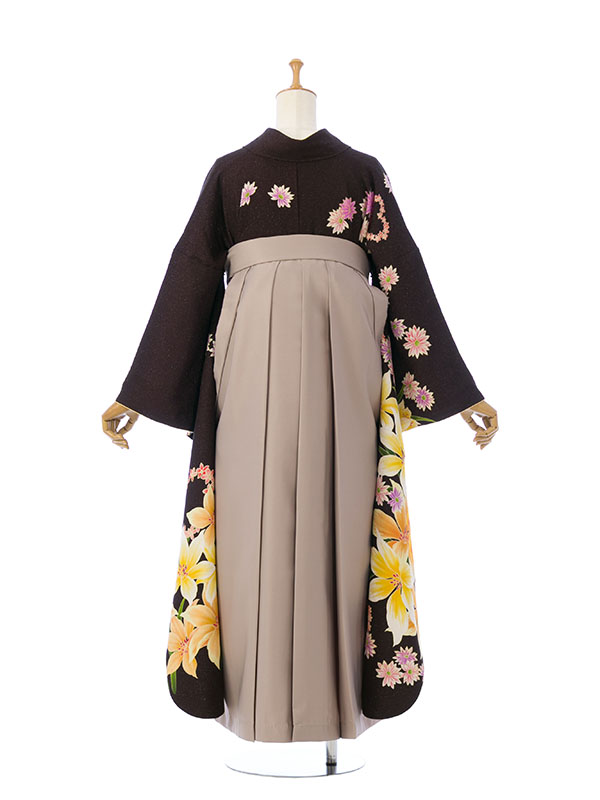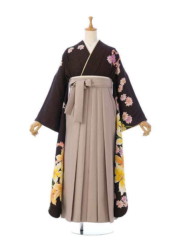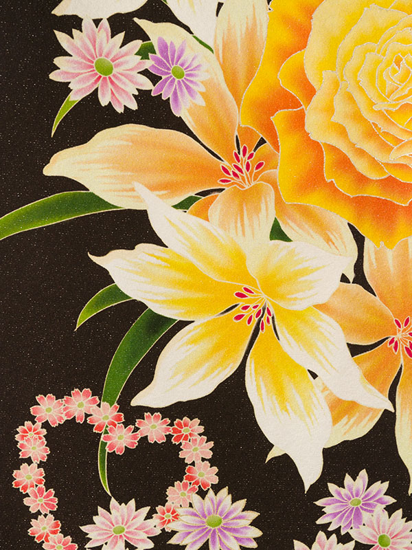 ■着物: こげ茶ラメ 百合 薔薇 洋花