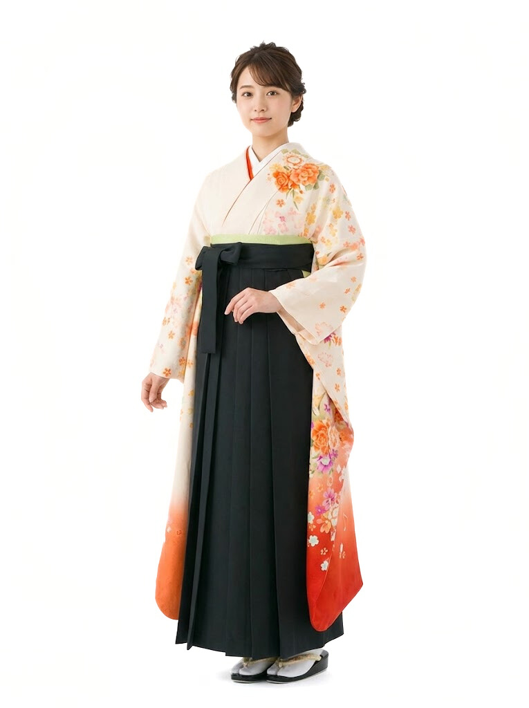 1.半巾帯/2.長襦袢(白半衿付き)/3.肌着(ワンピースタイプ)/4.草履/5.腰ひも 4本/6.和装ベルト/7.帯板/8.伊逹締め 2枚/9.重ね衿/10.衿芯/11.足袋(新品プレゼント)12.振袖/13.袴★ご注意ください※画像の小物類は、撮影用の為お付けする物と異なります。※半巾帯・重ね衿・草履などの小物類は、e-きものレンタルスタッフがコーディネートさせていただきます。※重ね衿は、着物に付属している場合がございます。★お母さま 訪問着はこちら♪★髪飾りなどの小物販売品は、こちらからどうぞ♪