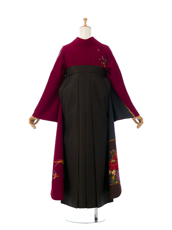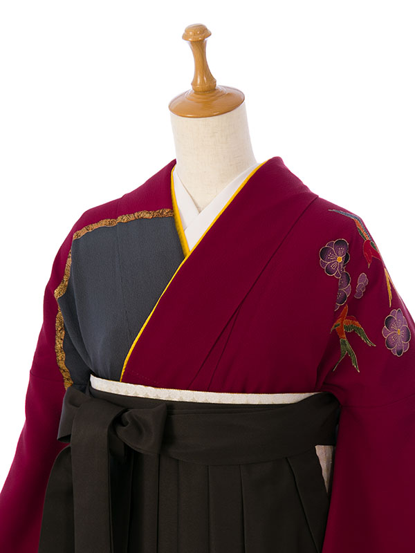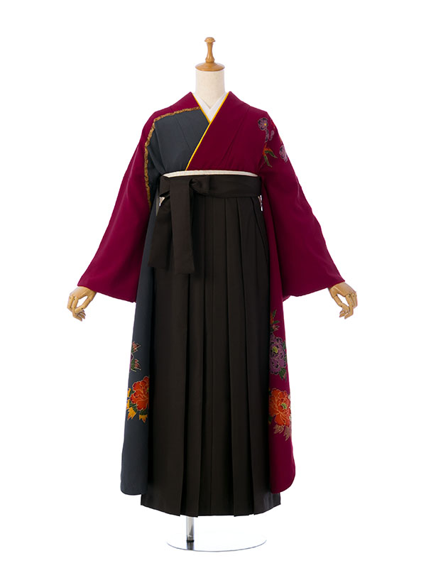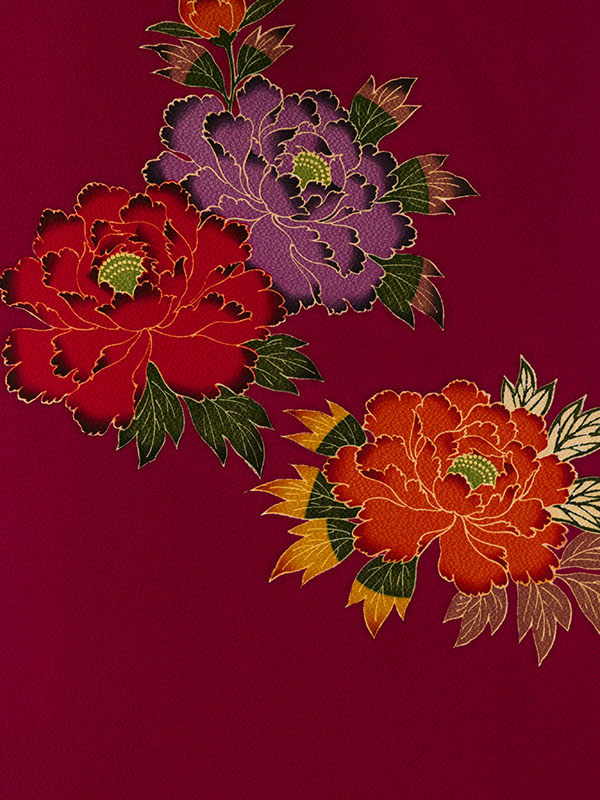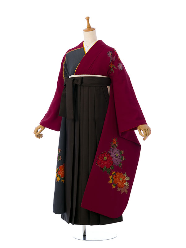 ■着物: ワイン/グレー/茶染め分け 牡丹 菊梅
