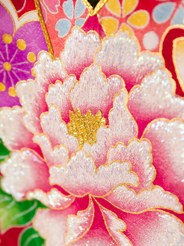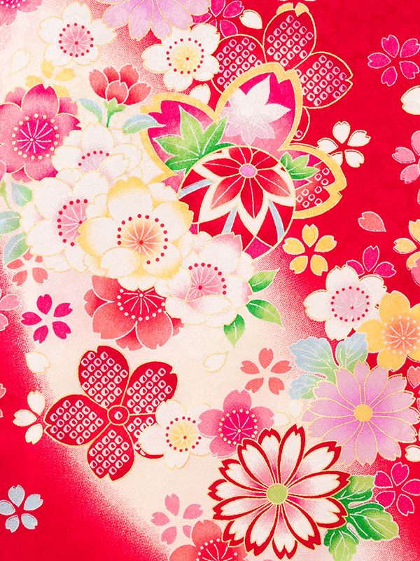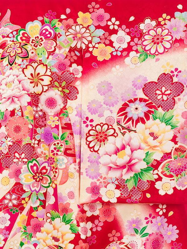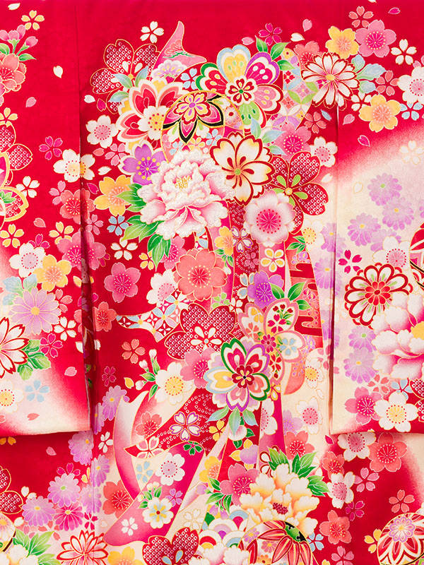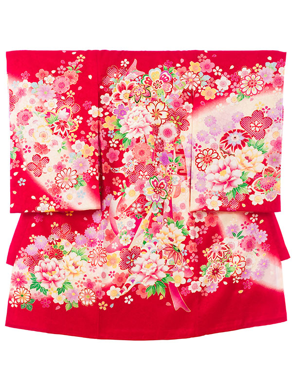 女児産着|お宮参り着物|正絹|赤ちゃん着物|レンタル|赤系|#HAMA092
