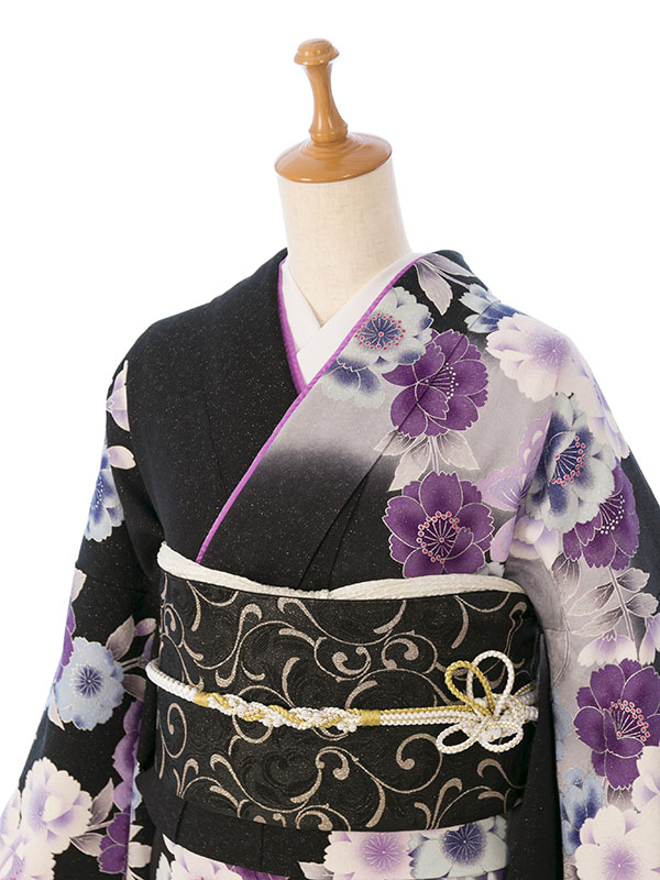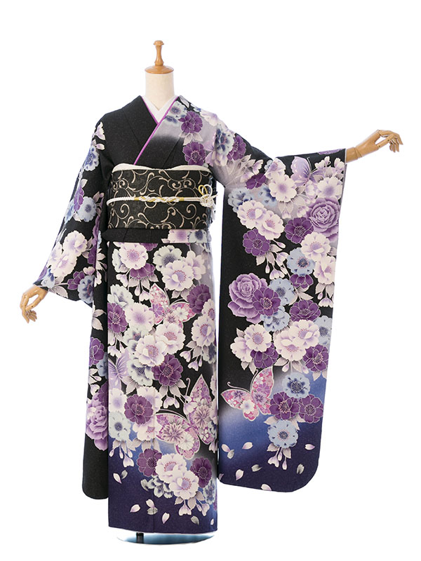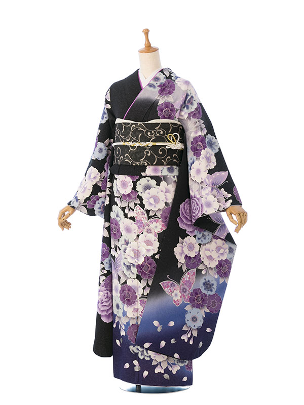 振袖|ワイドサイズ|黒系|対応身長:158-170cm|サイズ:13号-17号|8S206