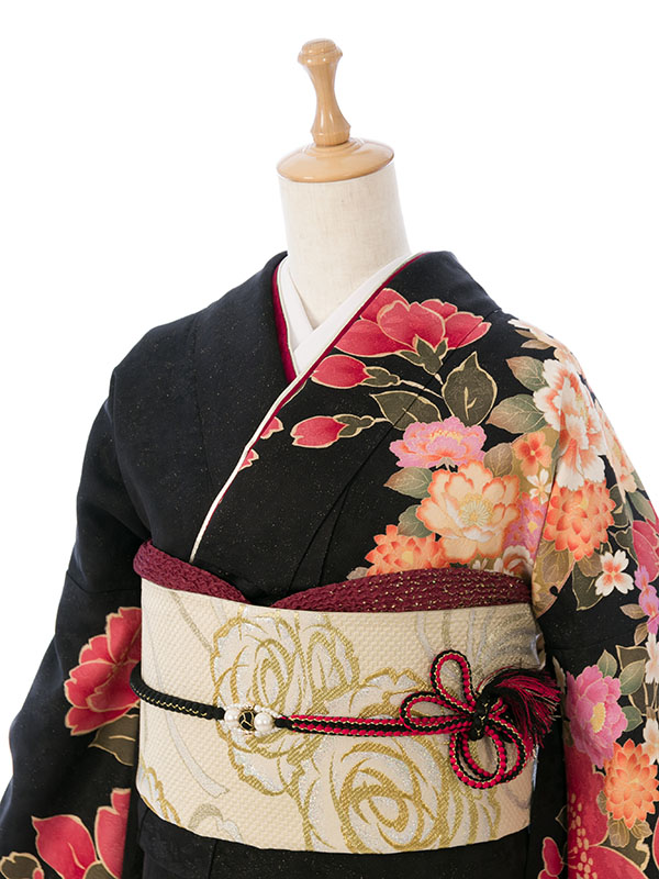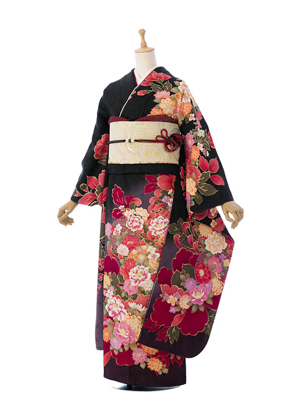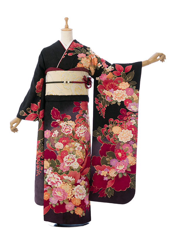 振袖|黒系|百花|5S769|対応身長:155-168cm|サイズ:7号-13号