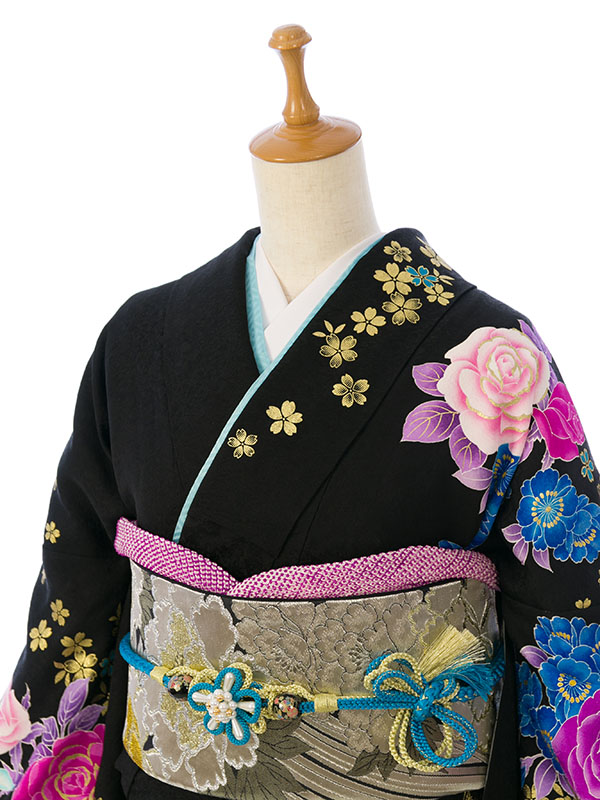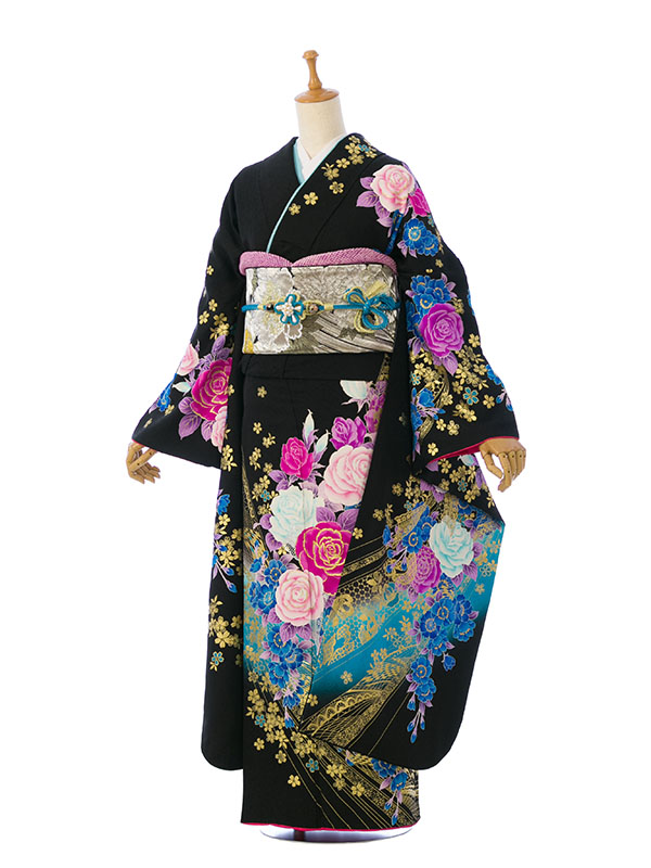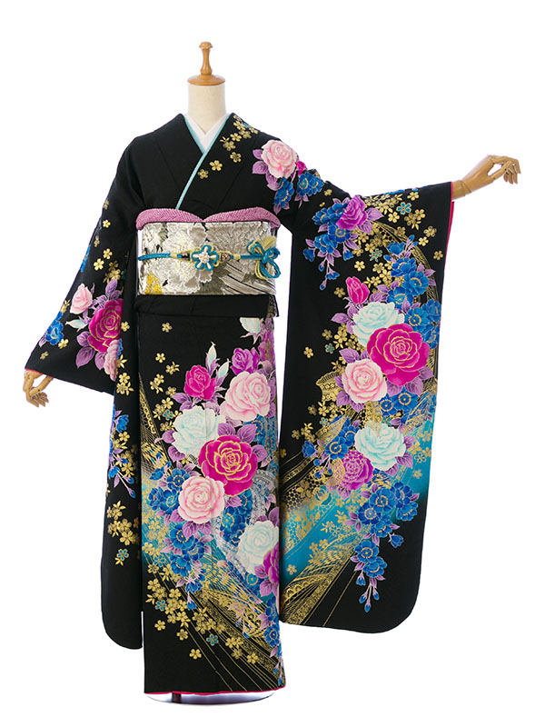 振袖|L|2L|黒系|対応身長:160-168cm|サイズ:13号-17号|8S234