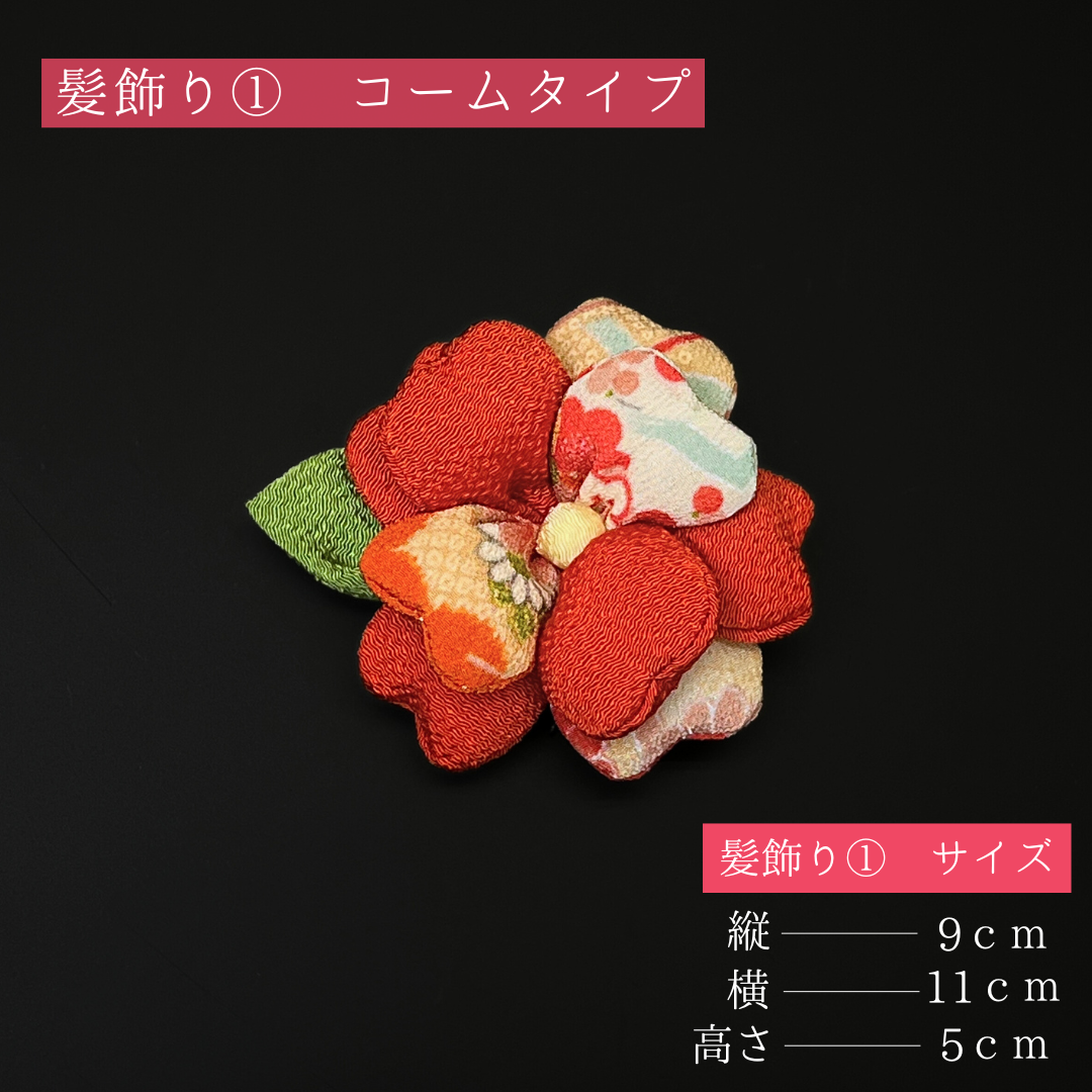 髪飾り①:縦約9cm×横約11cm×高さ約6cm(コーム仕様)