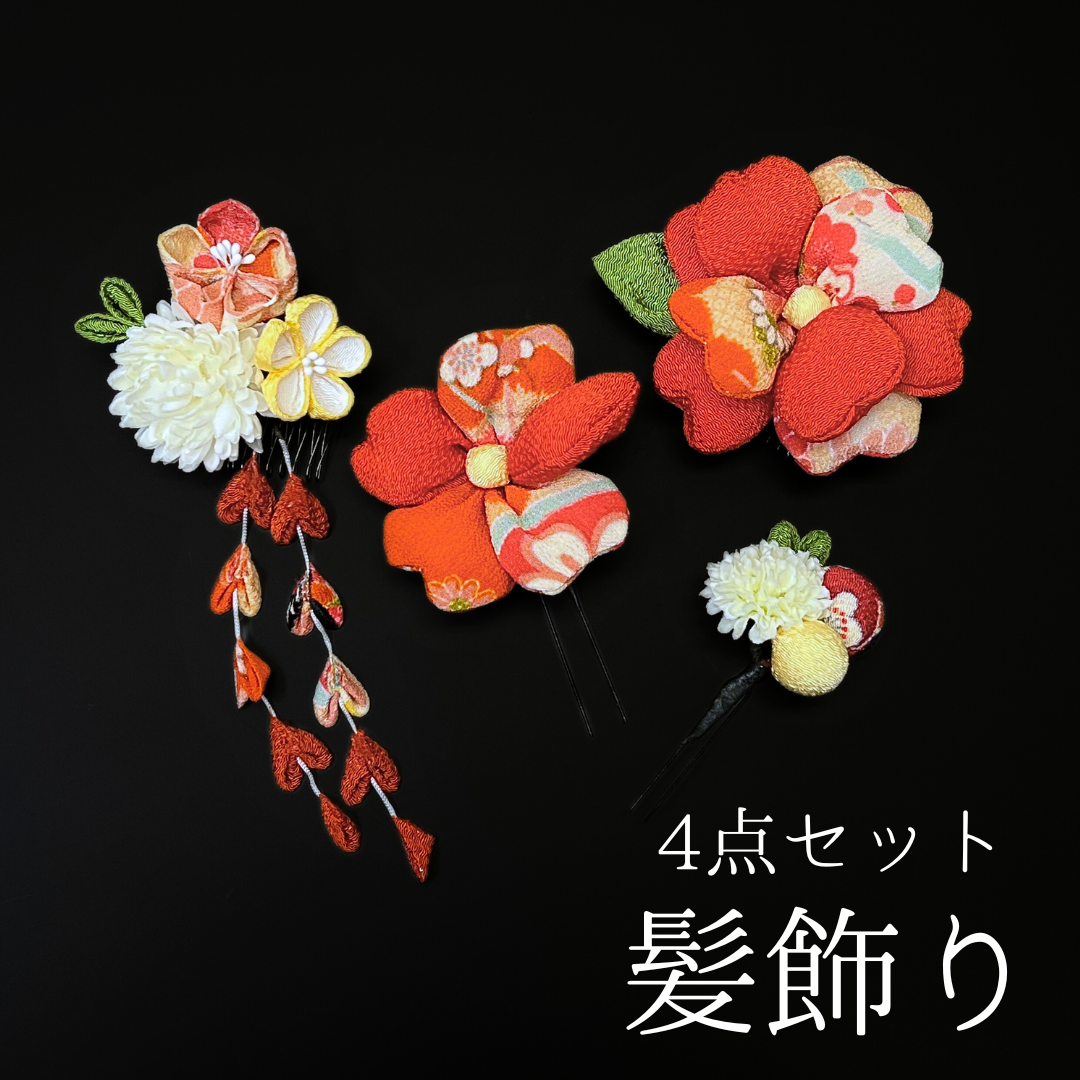 着物のヘアスタイルを彩る、ふっくらとした花の髪飾りです。
