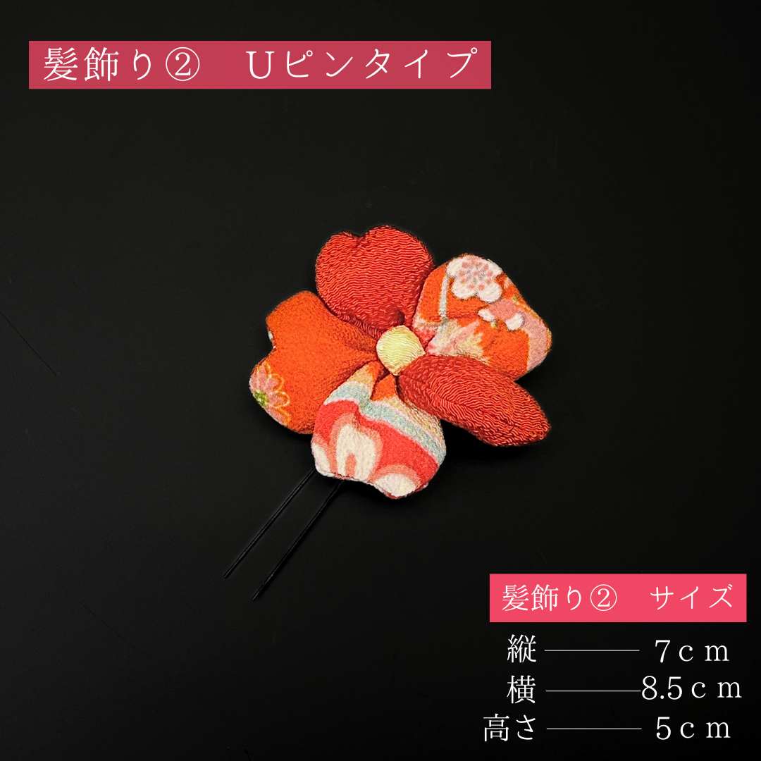 髪飾り②:縦約7cm×横約8.5cm×高さ約5cm(Uピン仕様)