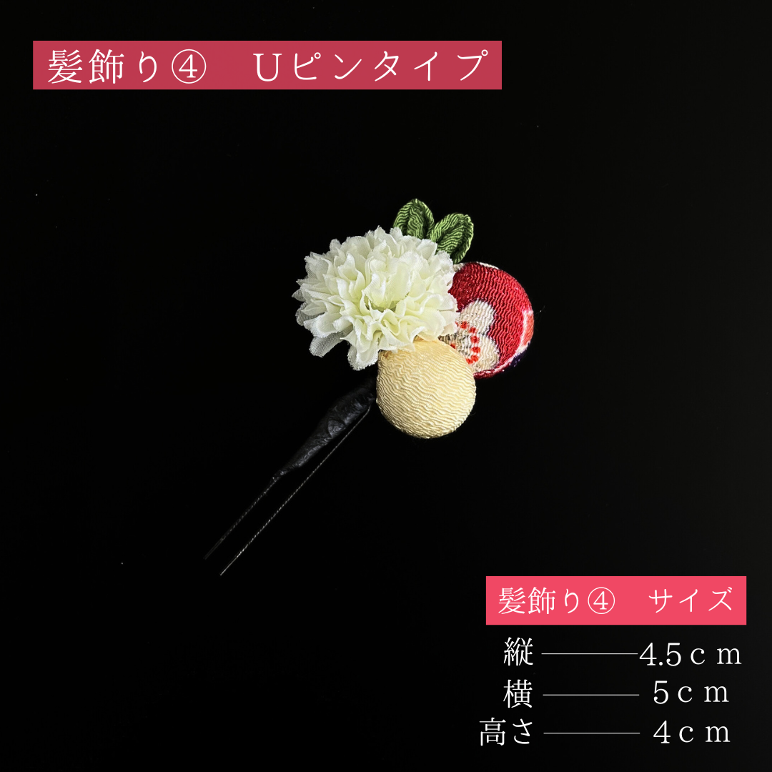 髪飾り④:縦約4.5cm×横約5cm×高さ約4cm(Uピン仕様)