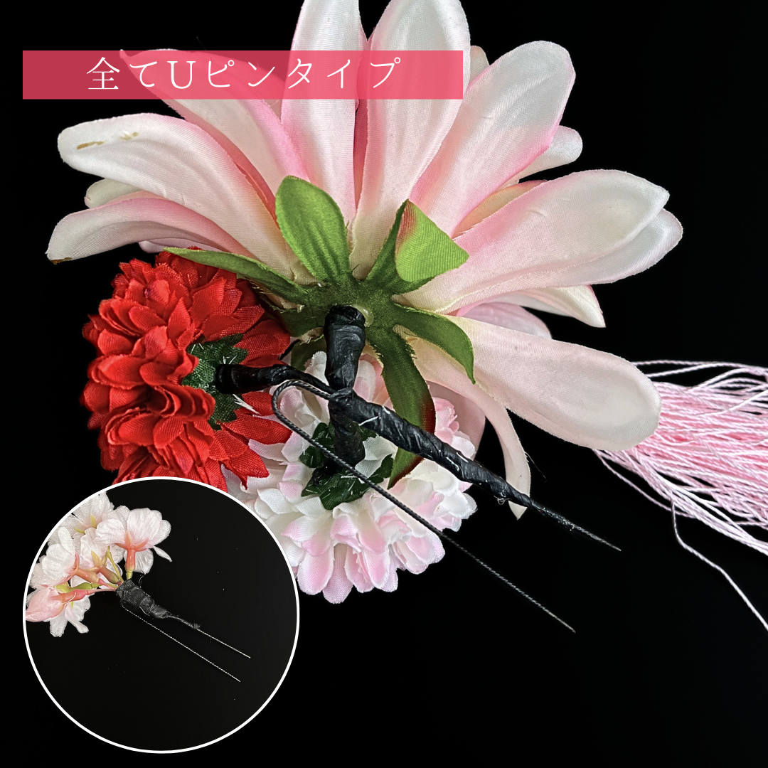 髪飾り小:縦約4cm×横約5.5cm×高さ約3.5cm(Uピン仕様)