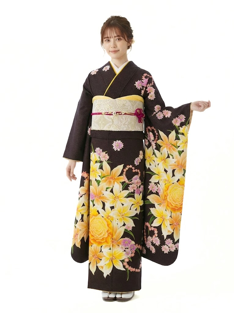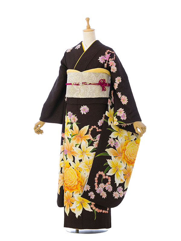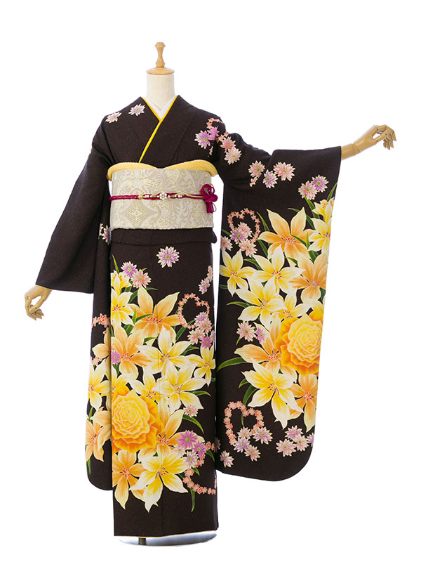 振袖|L|2L|茶系|対応身長:158-168cm|サイズ:13号-17号|8S191