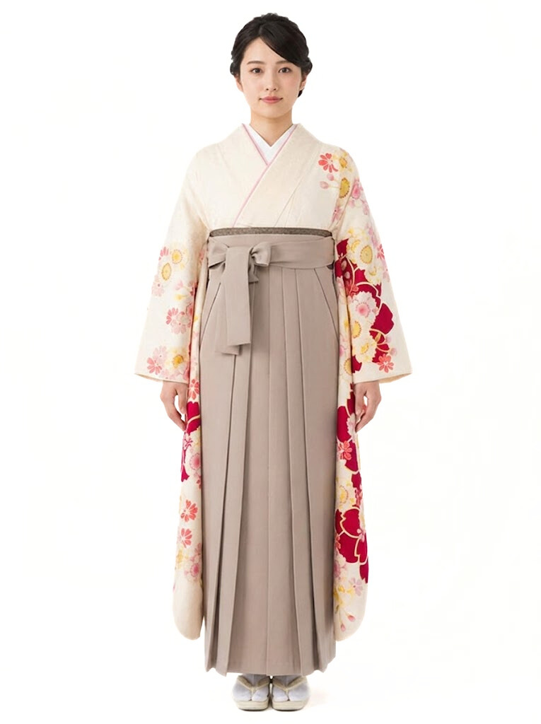 1.半巾帯/2.長襦袢(白半衿付き)/3.肌着(ワンピースタイプ)/4.草履/5.腰ひも 4本/6.和装ベルト/7.帯板/8.伊逹締め 2枚/9.重ね衿/10.衿芯/11.足袋(新品プレゼント)12.振袖/13.袴★ご注意ください※画像の小物類は、撮影用の為お付けする物と異なります。※半巾帯・重ね衿・草履などの小物類は、e-きものレンタルスタッフがコーディネートさせていただきます。※重ね衿は、着物に付属している場合がございます。★お母さま 訪問着はこちら♪★髪飾りなどの小物販売品は、こちらからどうぞ♪
