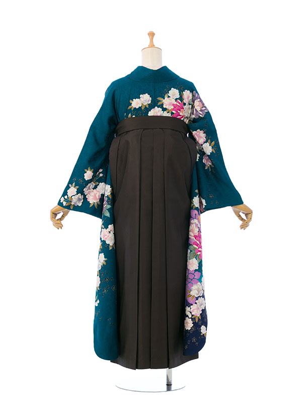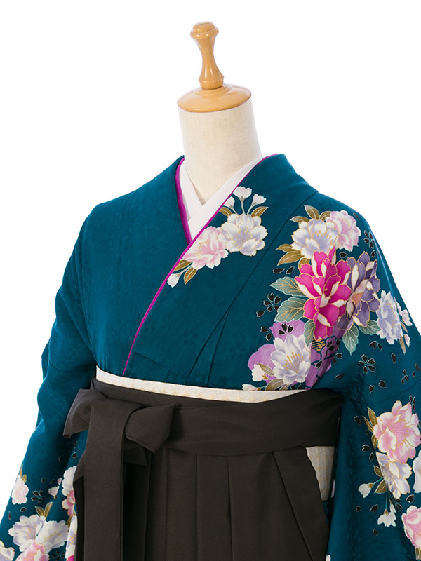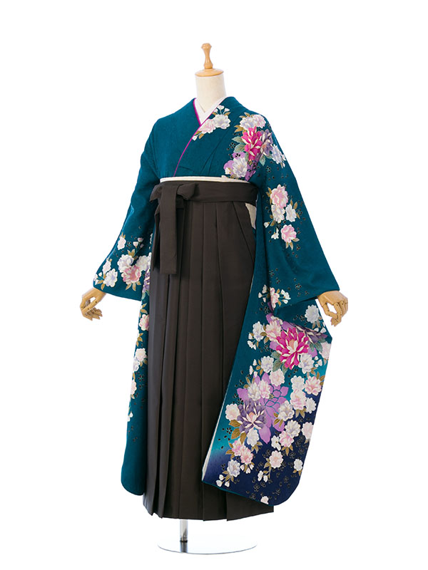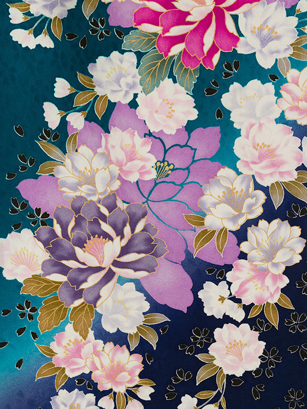 ■着物: グリーン 牡丹に桜 金彩