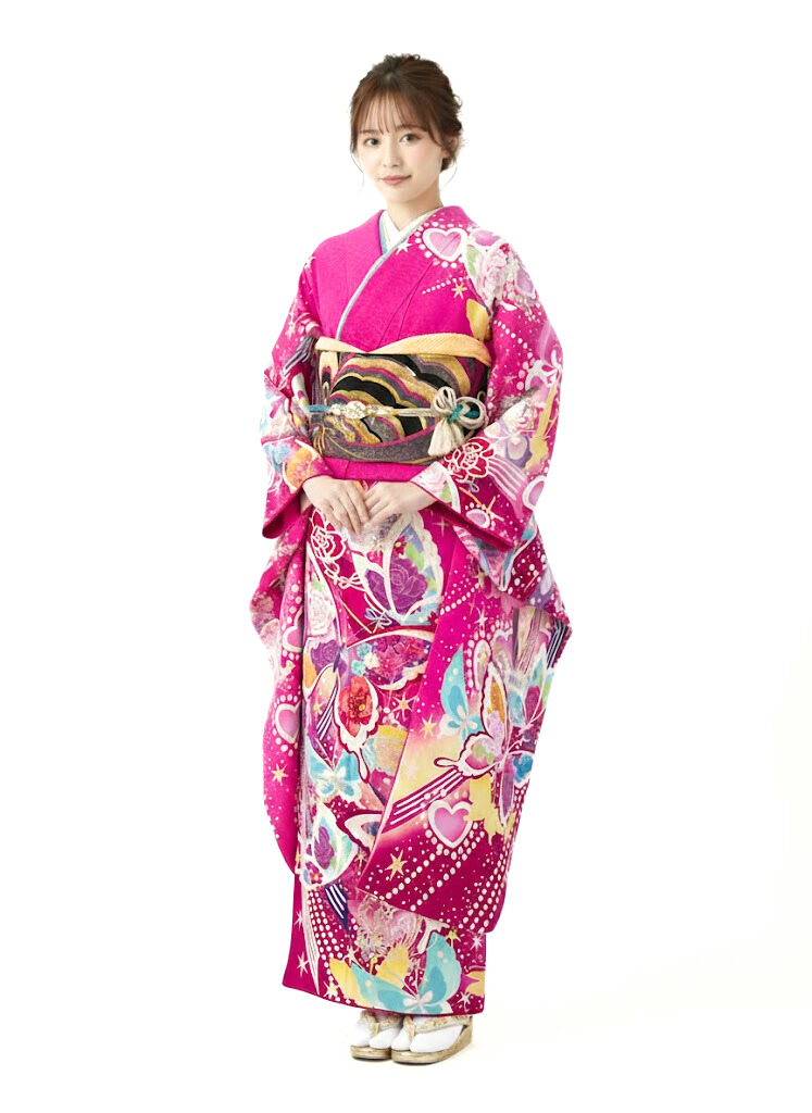 振袖|ピンク系|ハート|7S517|対応身長:160-170cm|サイズ:7号-13号
