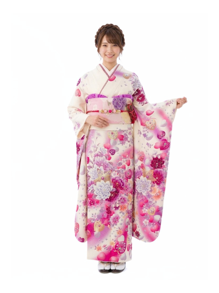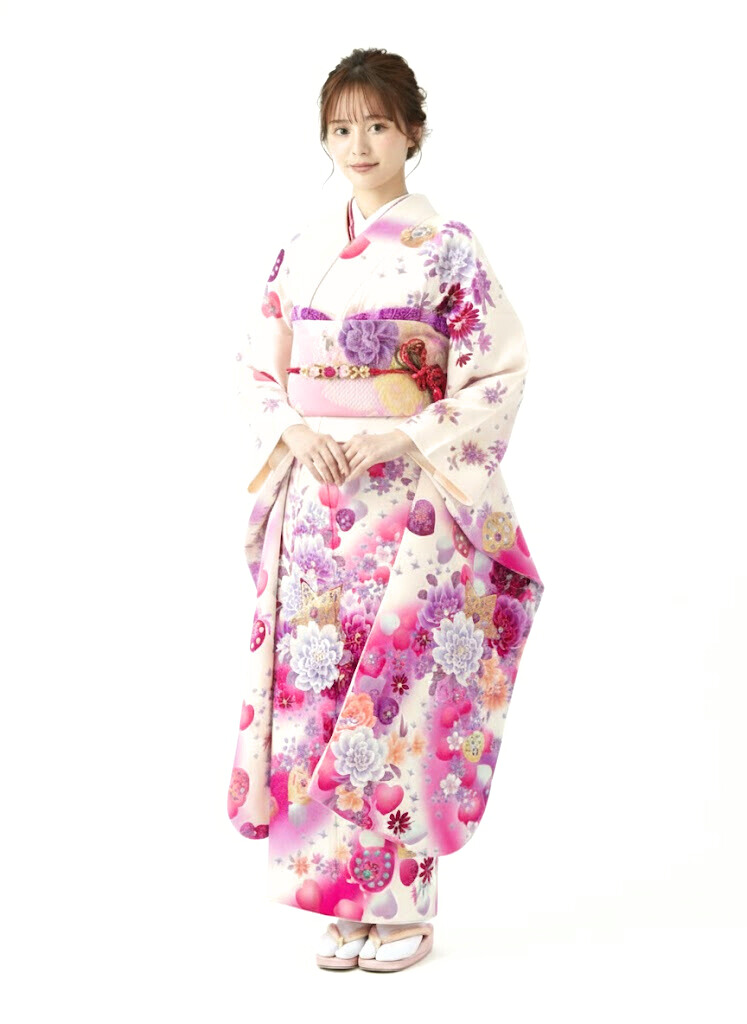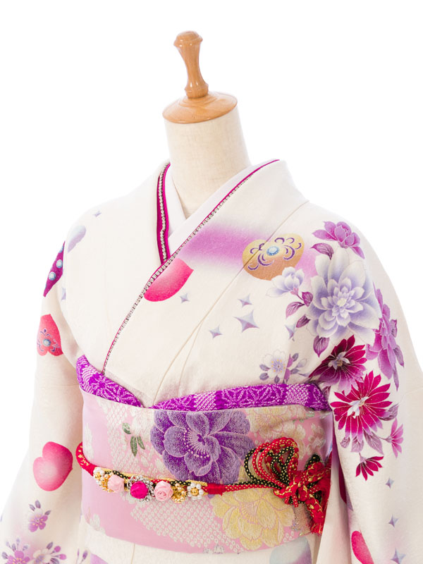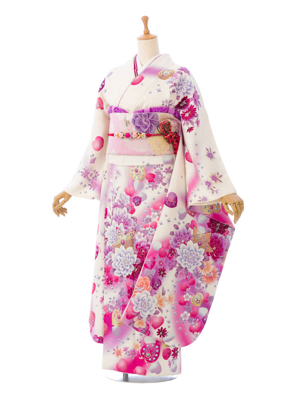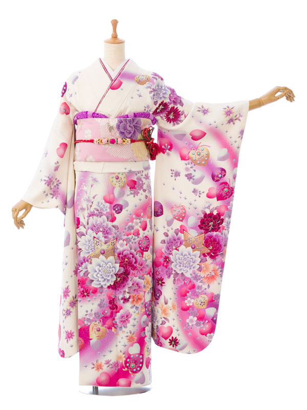 振袖|白系|ハート|6S592|対応身長:158-168cm|サイズ:7号-13号