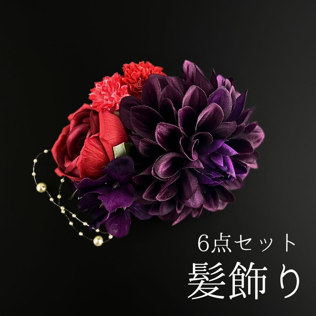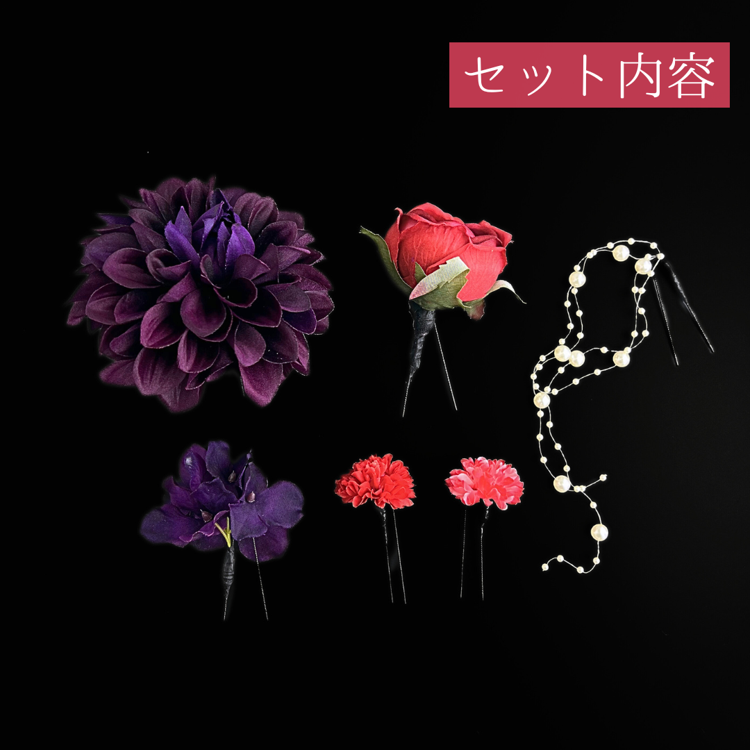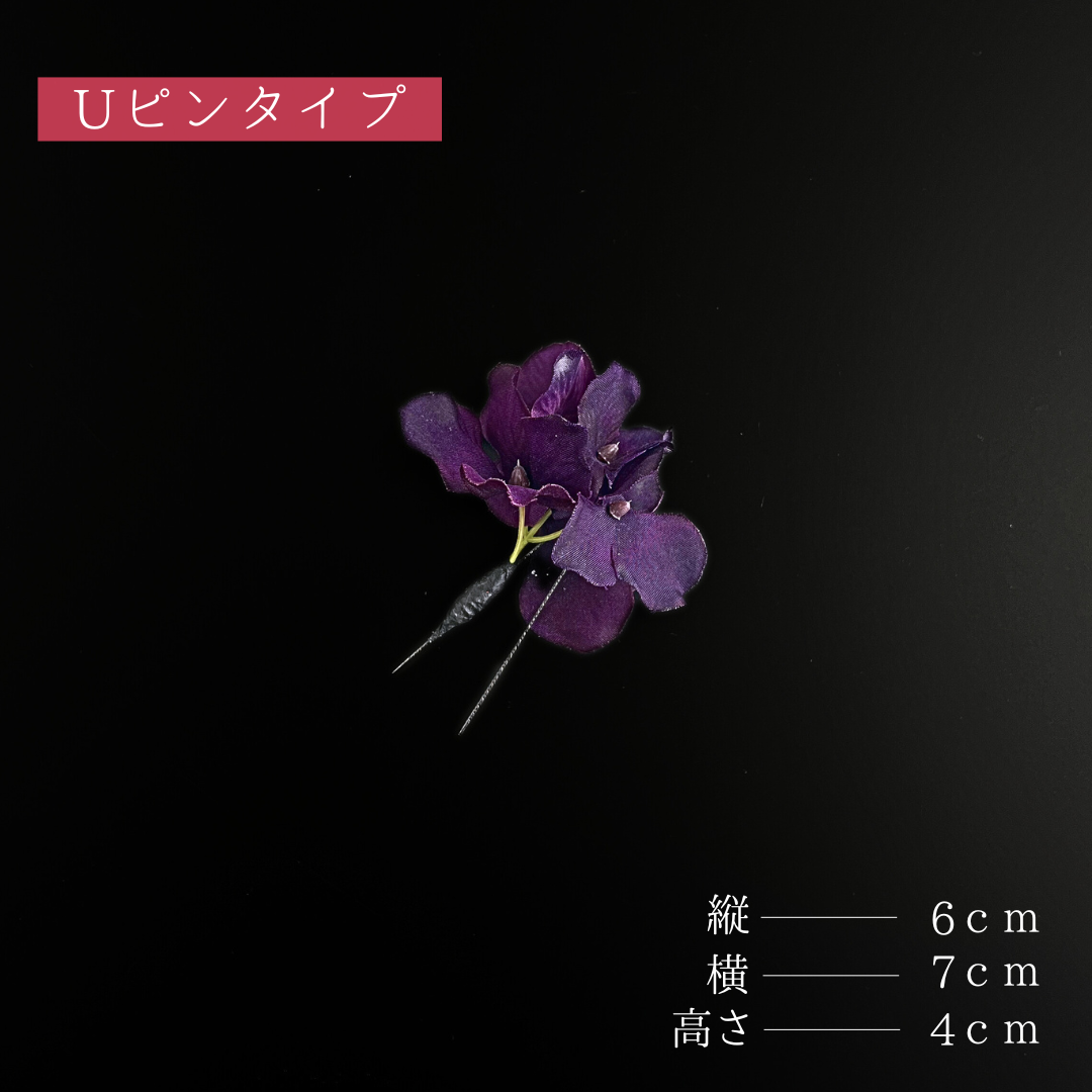 こっくりとした紫色の花がシンプルながら、上品で華やかな髪飾りです。