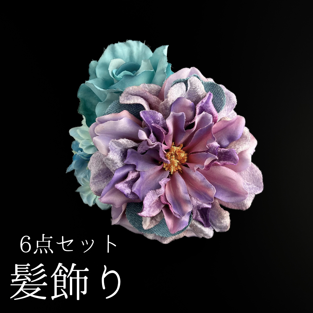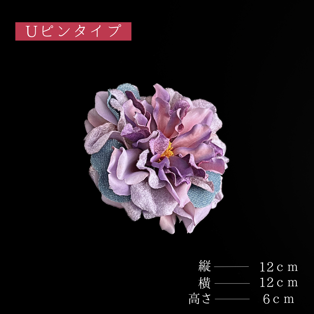さまざまな素材が重なり合い立体的なお花が魅力的な髪飾りです!