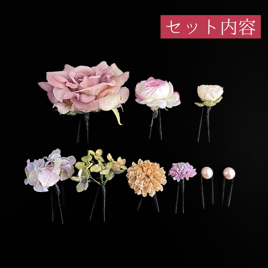 全ての飾りが1本1本に分かれているので、様々なヘアアレンジにお使いいただけます。