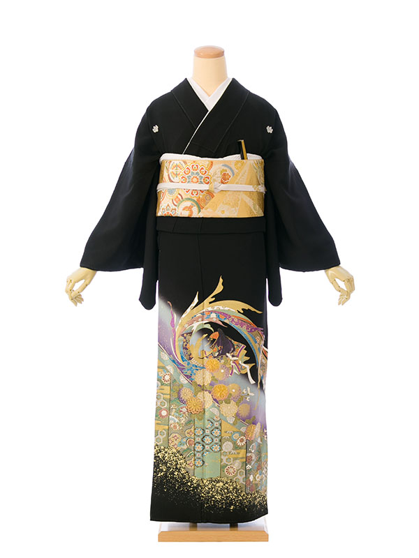 黒留袖|Mサイズ|高級友禅|対応身長:153~164cm|サイズ:7~13号|#MT-024